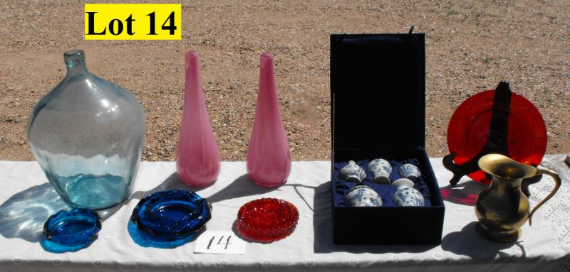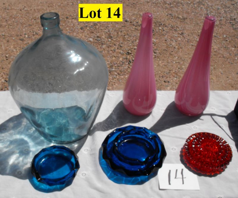 Large 12” x 17” Baylor Vase, 2 Pink Glass Vases 15 ½” Tall