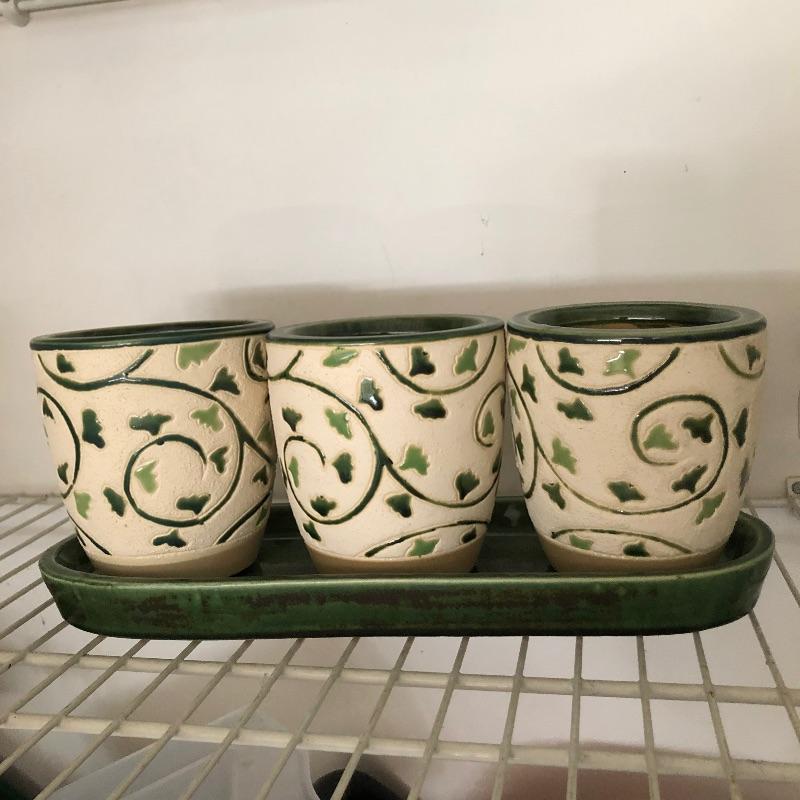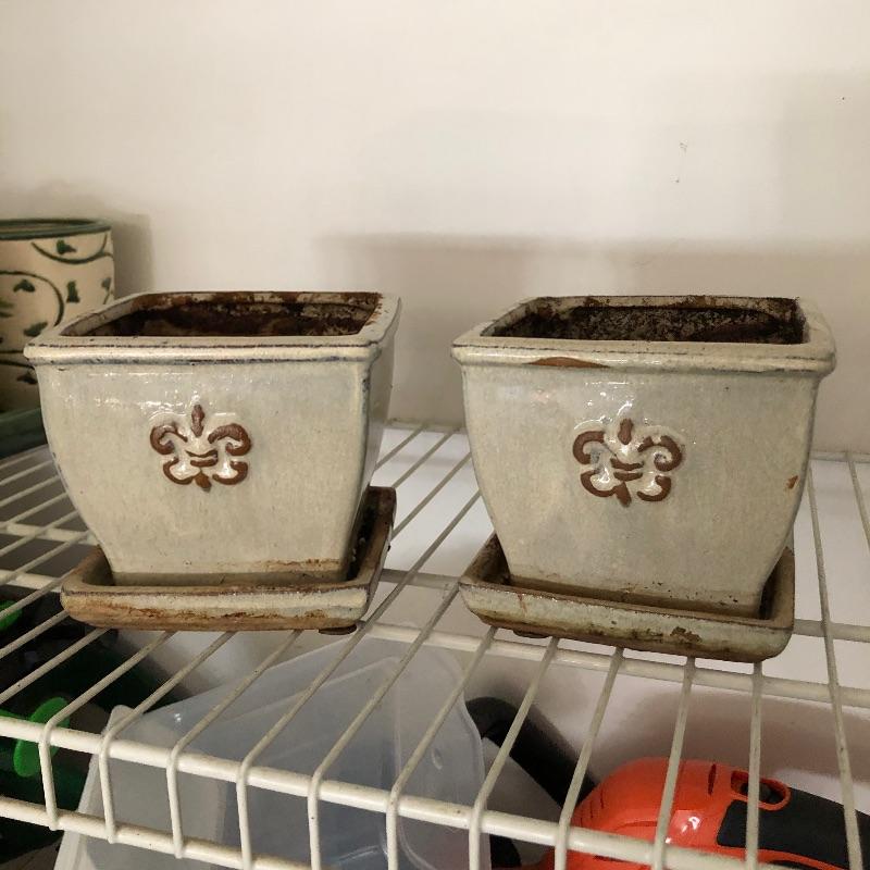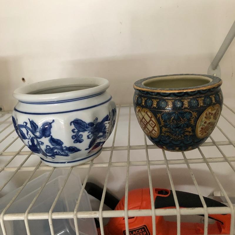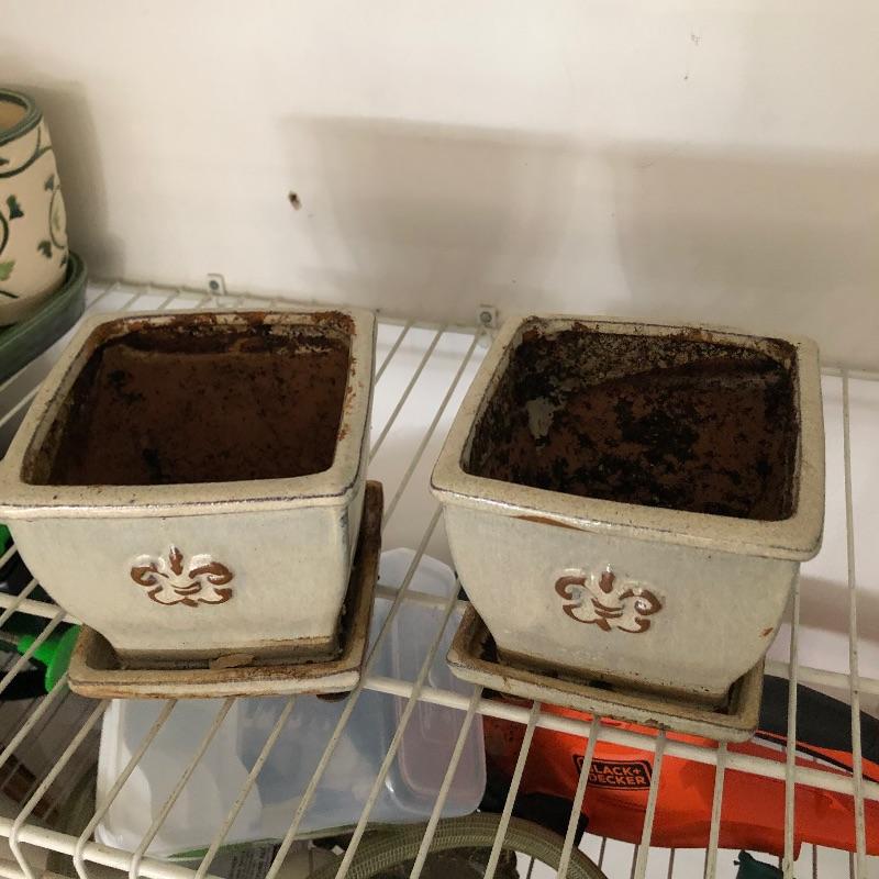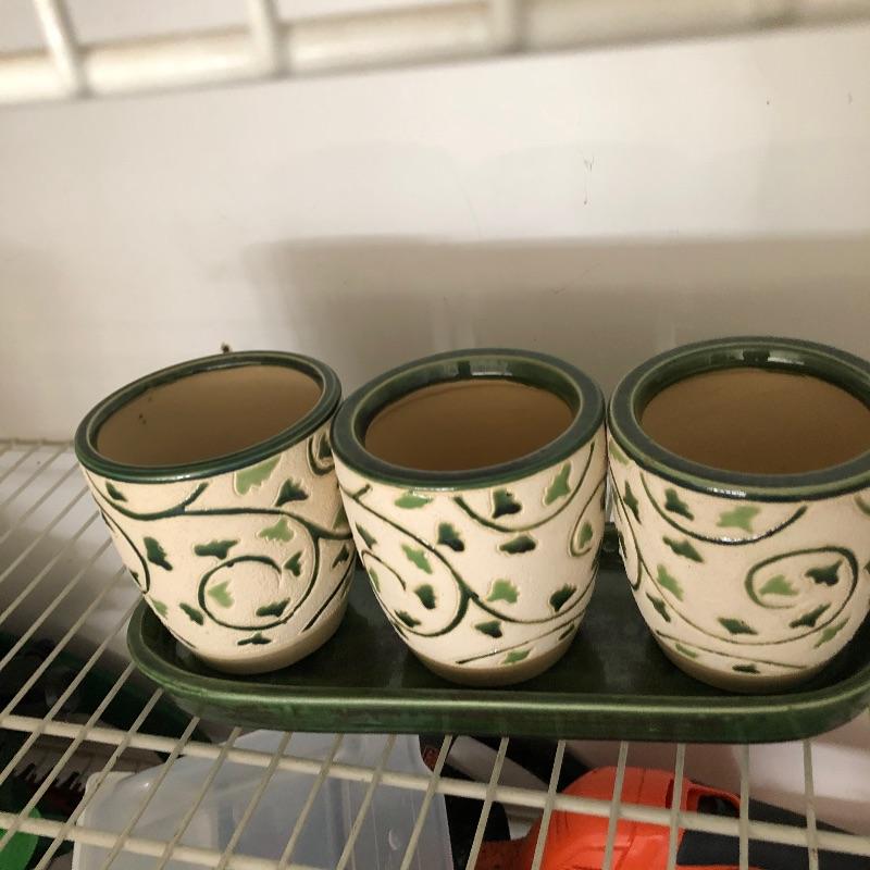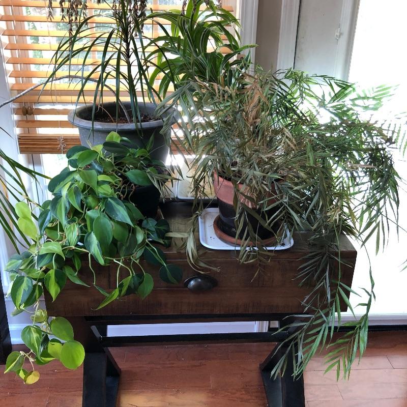 House plants have many health benefits that help clean the air in your home amongst other things and add appeal to your decor. There are 4 house plants in this lot. The bamboo palm recently got a much needed drink which is slowly bringing it back to life. All pots are plastic except one cream ceramic pot which measures 7” diameter x 6” tall. Table is not included. In addition we have added a number of mostly ceramic planters along with some that are metal, see images. We can not guarantee the health of these plants by pick up time. We will do our best to keep them happy!