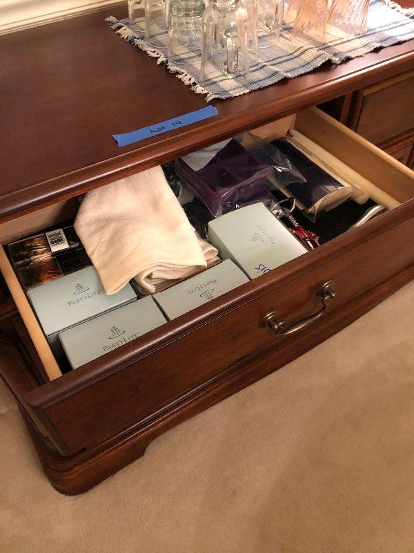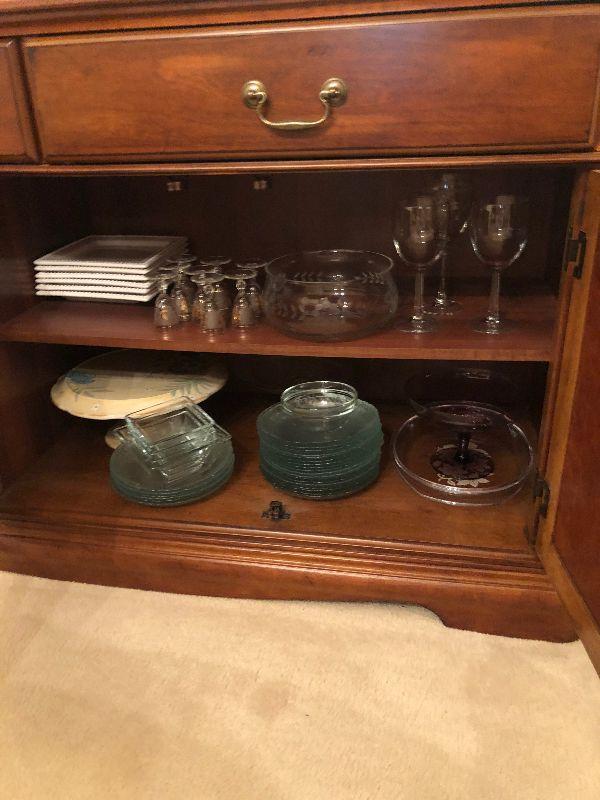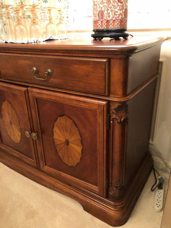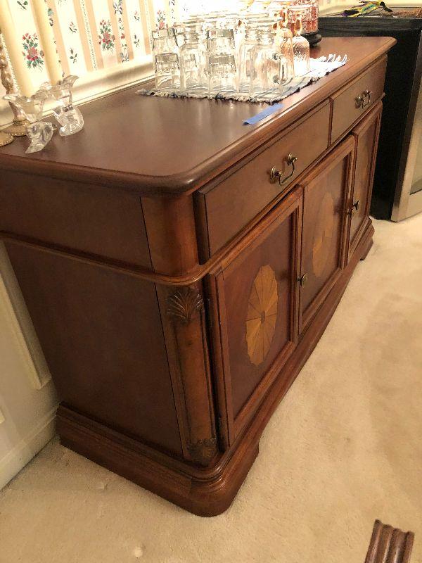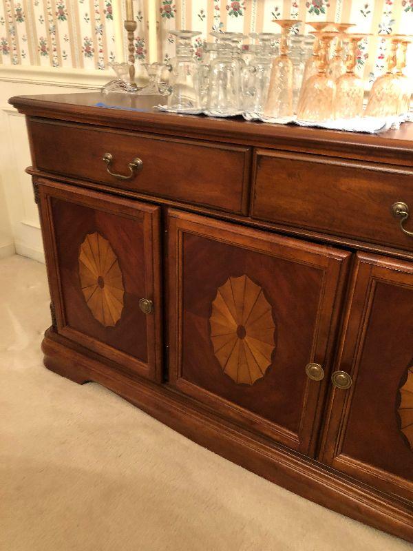 Lot 14 - Inlaid Wood Buffet Ensemble Including Contents