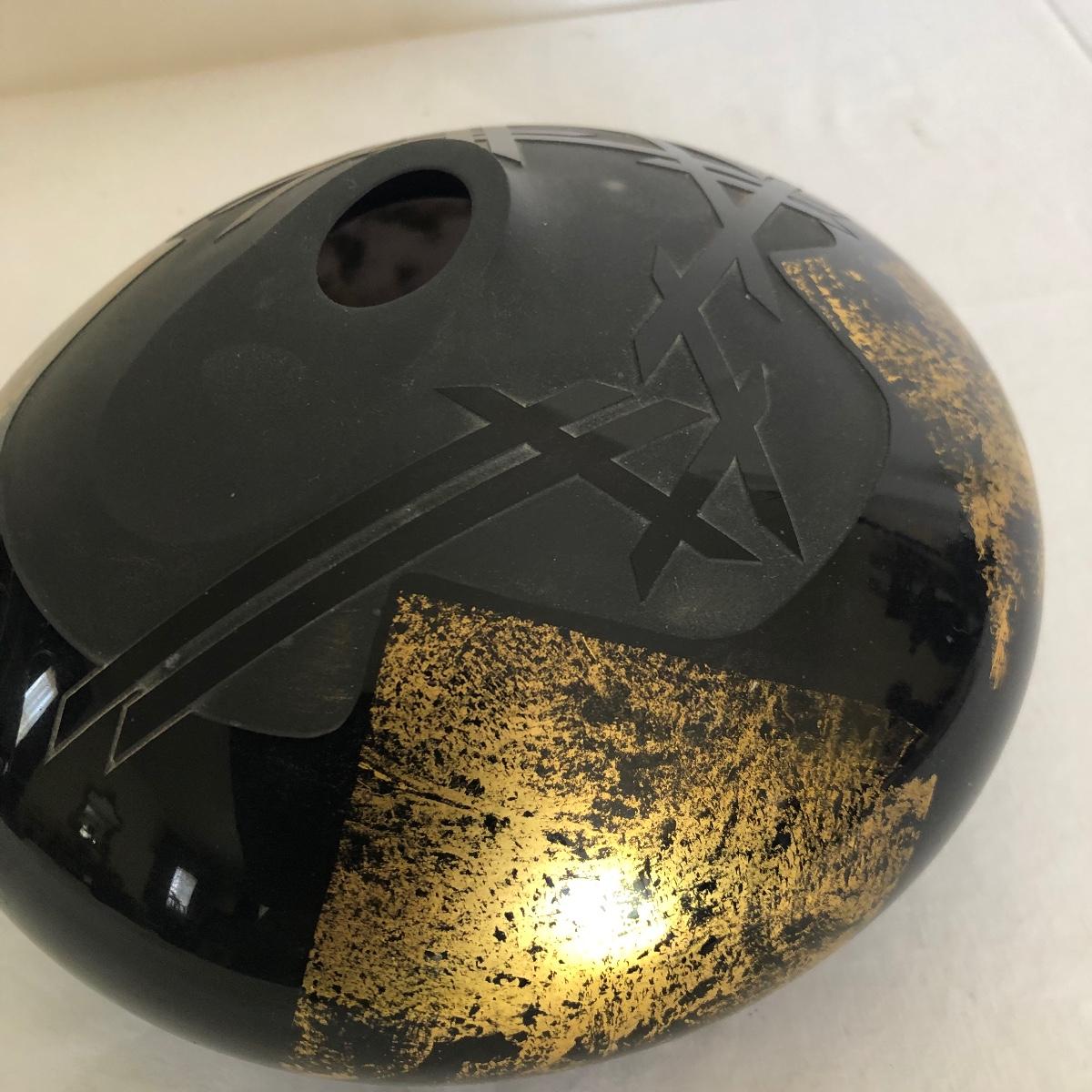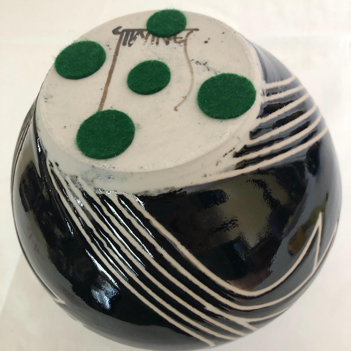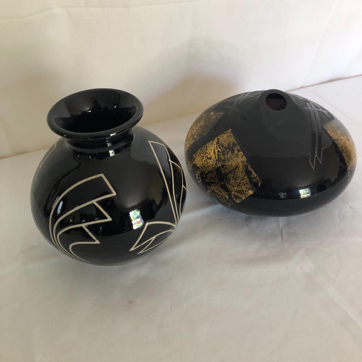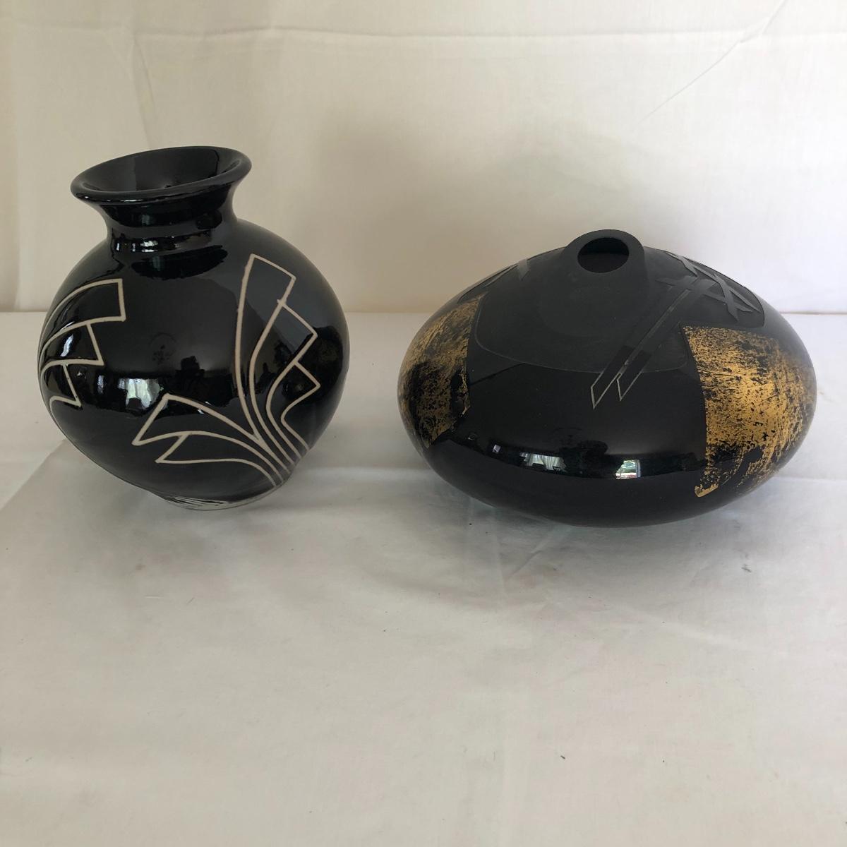 The John Givvines vase is 7” x 5.5” and is signed. The Toland Sand vase is signed and numbered 140. It measures approximately 5” x 7”. Shipping Available.