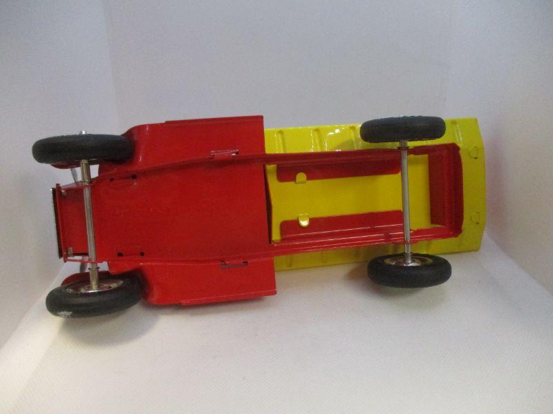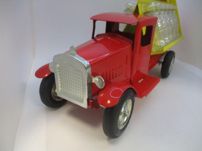 This truck is in like new condition. The body of the truck is metal and the wheels are a hard rubber. There are (5) bottles on each side and they still have the protective covering on them to keep them intact.