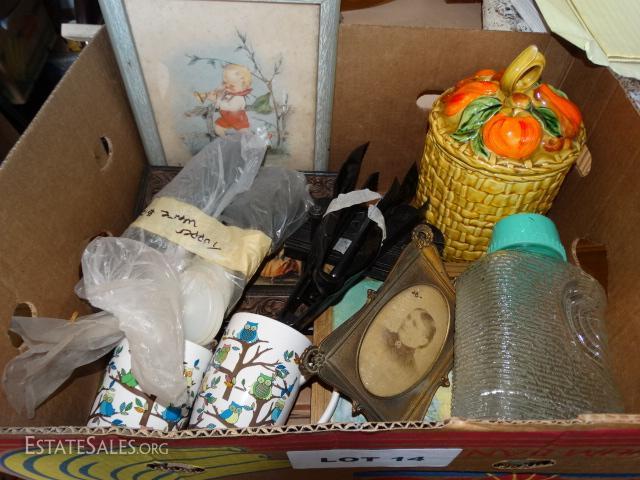 Lot #14 - Misc. housewares, cookie jar, artwork, kitchen