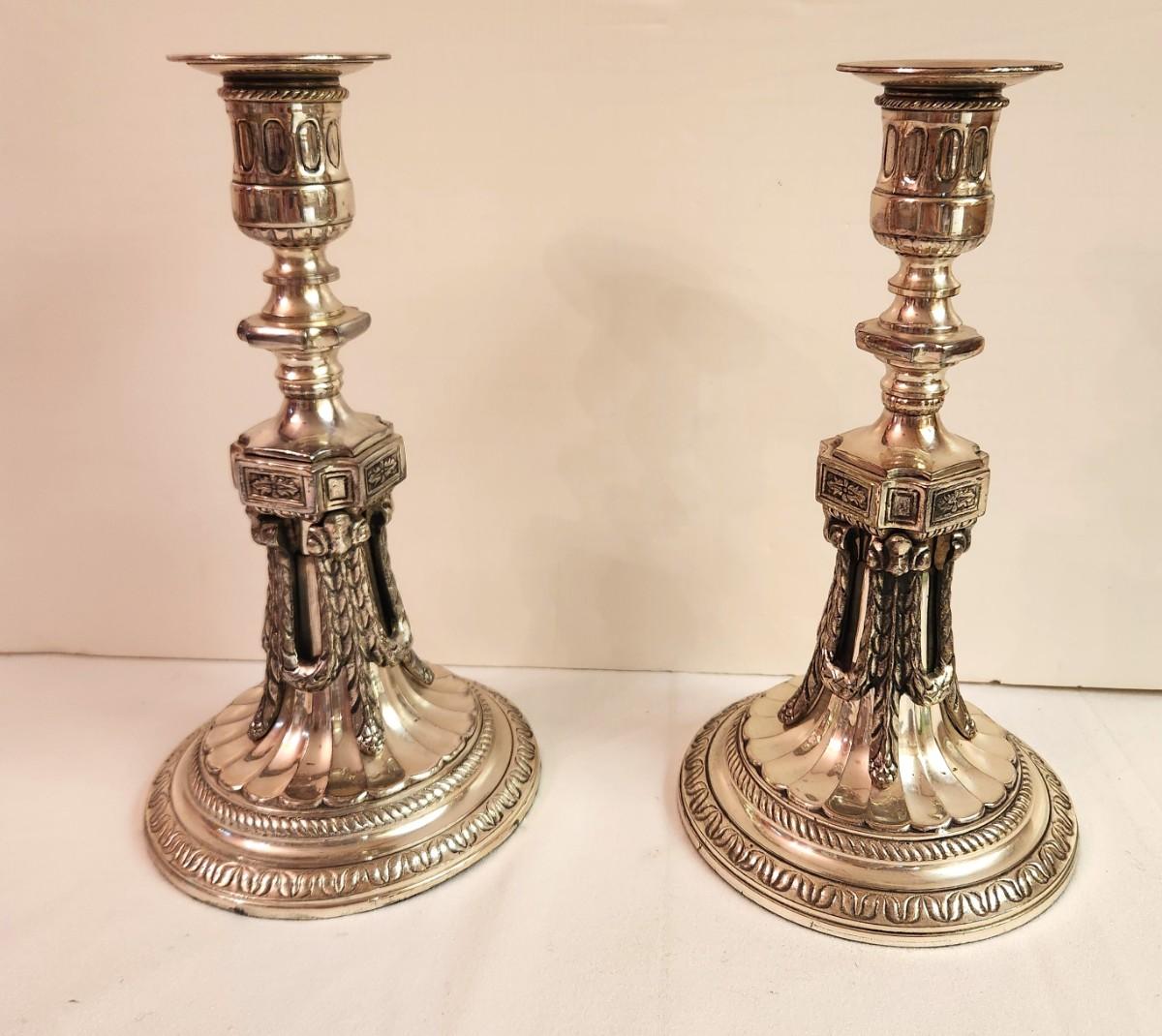 Lot #14 Pair of Ornate Silverplate Candlesticks