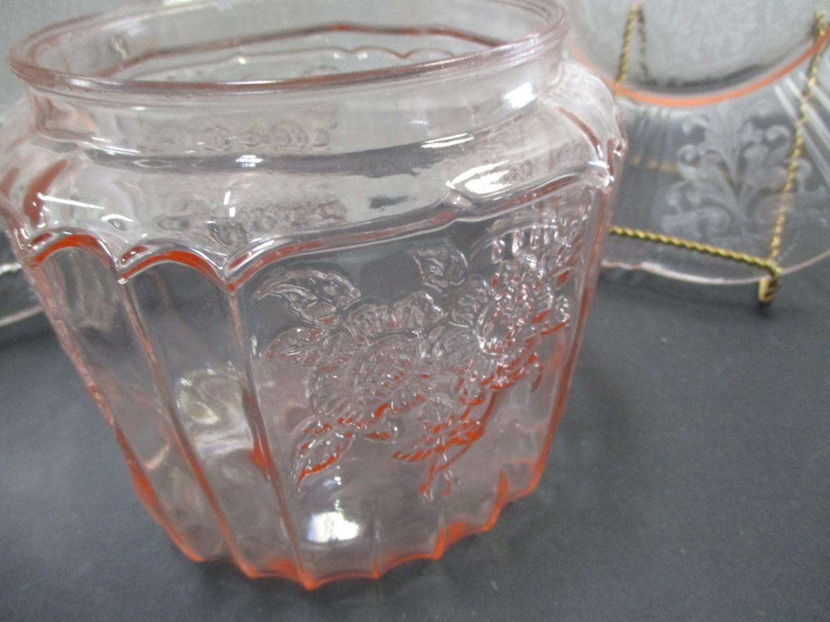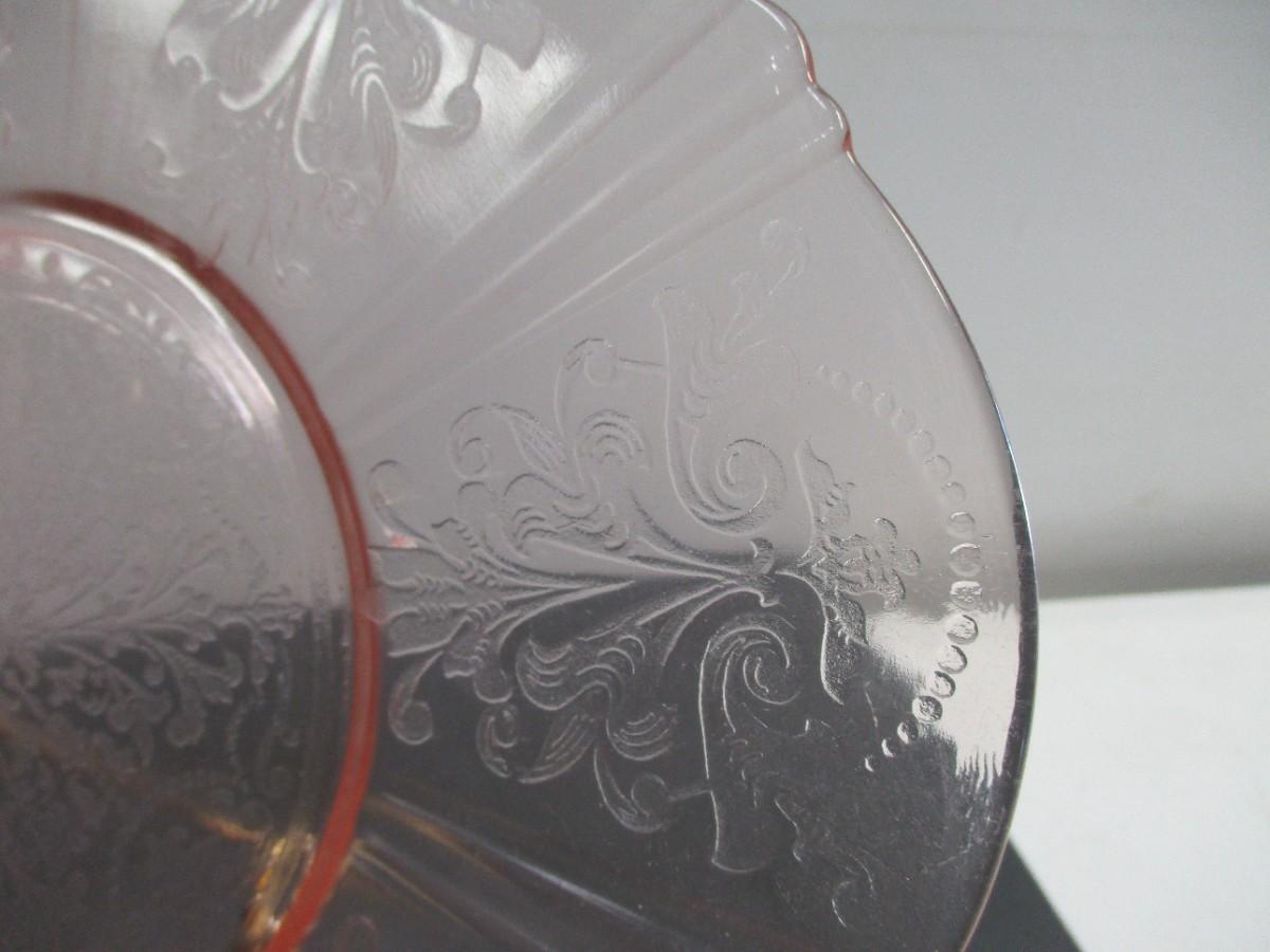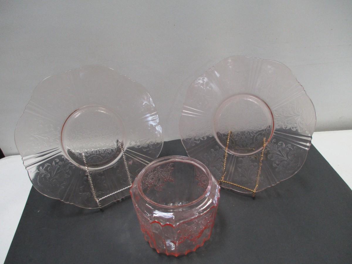 Lot 14 - Pink Crystal Etched Glass Dishes