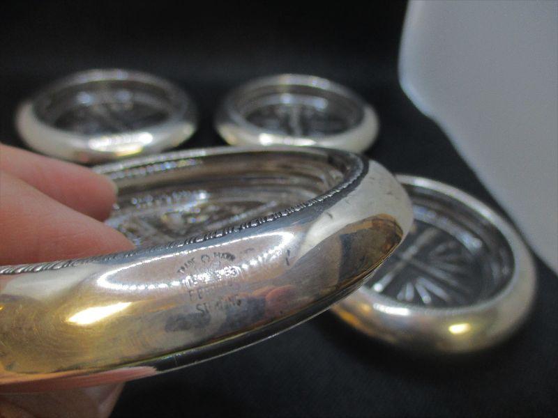 Each of the four coasters are marked, "Trademark 1883 F.B. Rogers Sterling". They look very similar to Lot 13 and are about 4" in diameter, in great condition.