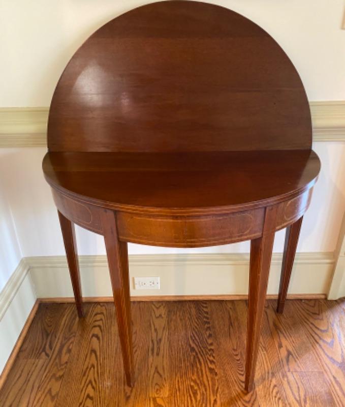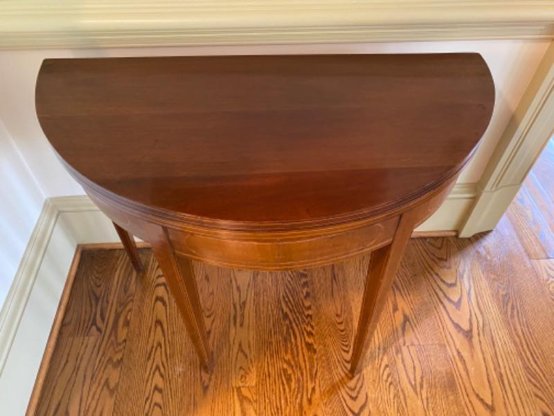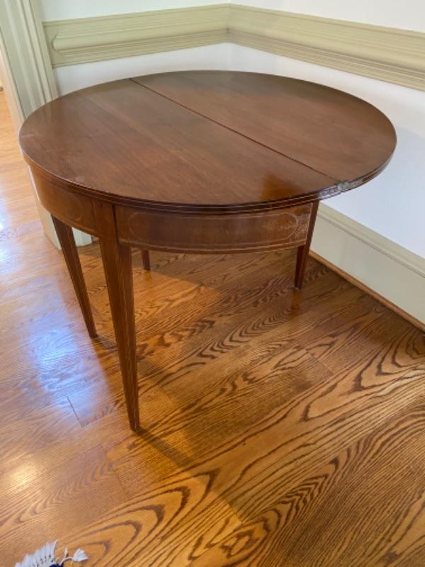 Beautiful round Hepplewhite flip top game/ card table ( 1-loose leg)