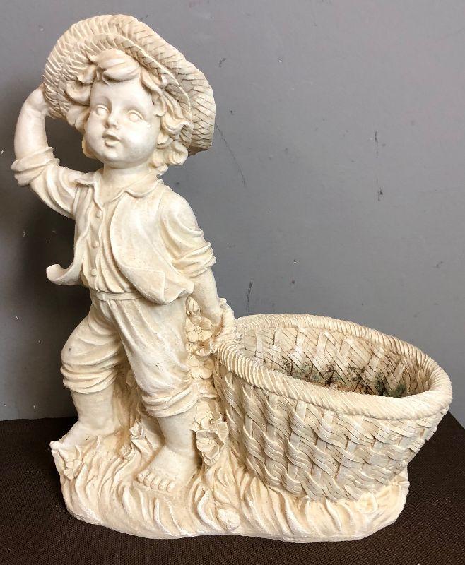 Lot #14 Sculpted Resin Farm Boy Planter