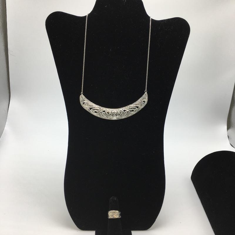 Silpada necklace and ring includes Poseidon ring of sterling silver and Ahead of the Curve necklace of oxidized sterling silver. Necklace measures 16” - 18”. Ring is appx 6.5 size