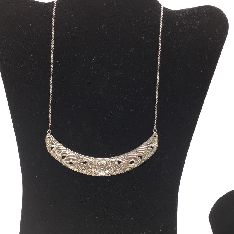 Lot 14 - Curved Silver Necklace & Poseidon Ring