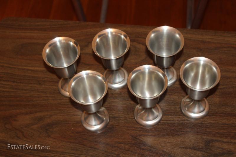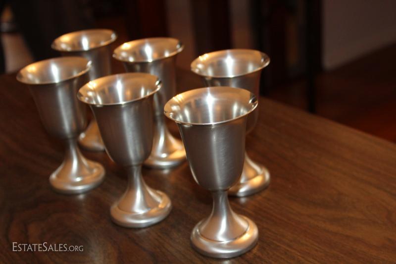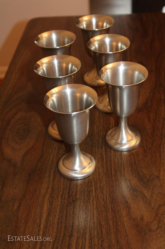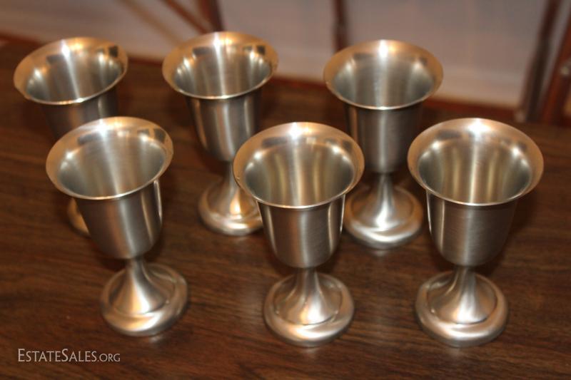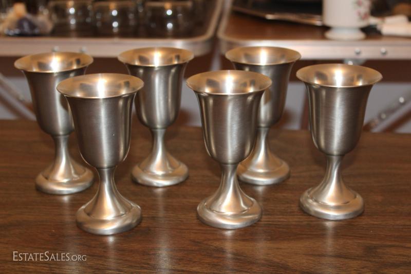 Lot 14 is 6 pewter wine goblets. These hold roughly 8ozs.