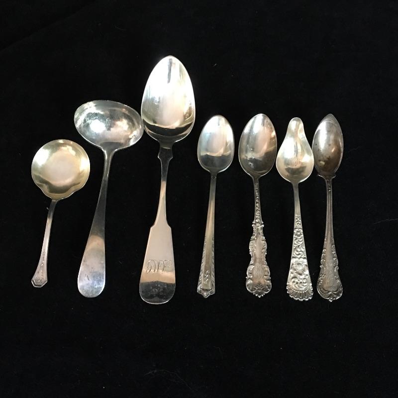 Largest spoon measures 8” long. Starting price based on sterling melt value.