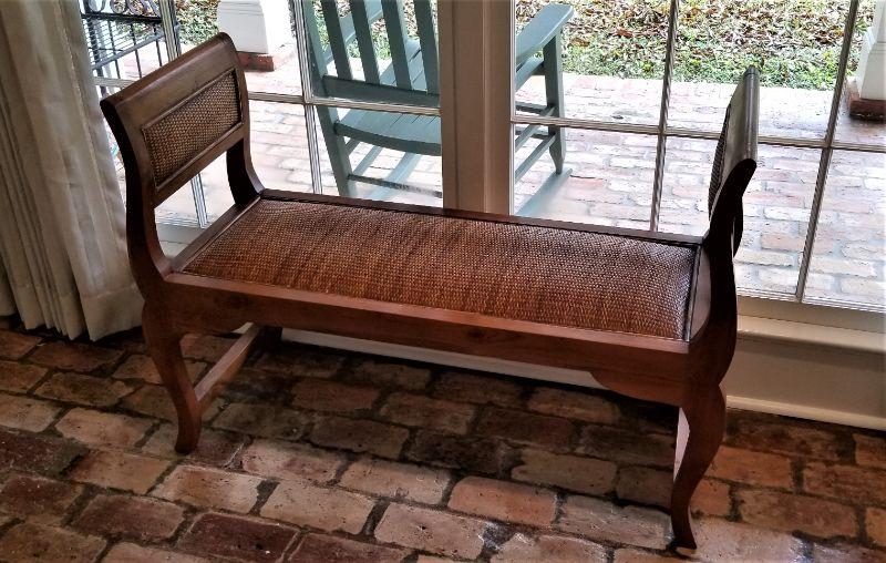Lot #14 Stylish Pine Bench with Rattan Seat and Inserts