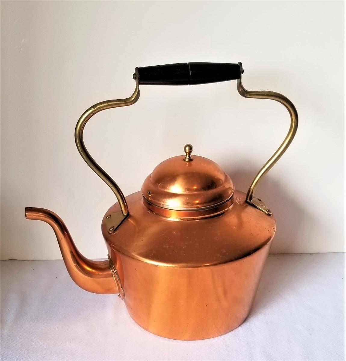 Decorative tea kettle (made Portugal) - done in the antique English style. Copper finish. 13" tall, 12" across counting the spout.