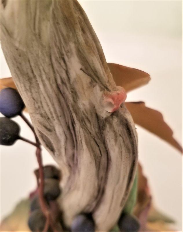 This older BOEHM porcelain bird figurine is really high quality - fantastic detail all the way around. Older mark. I have show a picture of a spot that I believe is just the end of a vine - however, I wanted to point it out in case there is a break there. I don't believe it is a break, as nothing appears to be missing on the piece, but I'll let you be the judge. The bird shown is the Chestnut Backed Chickadee. Stands 10" tall.
