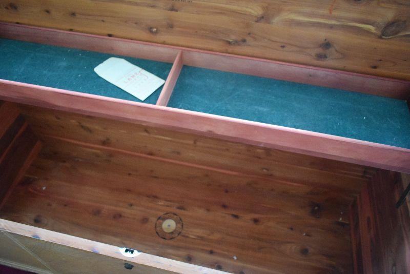Cedar hope chest by Lane. Well loved. This lock does not conform with safety standards of today, but Lane will send you new lock. Bring help to move from second floor.