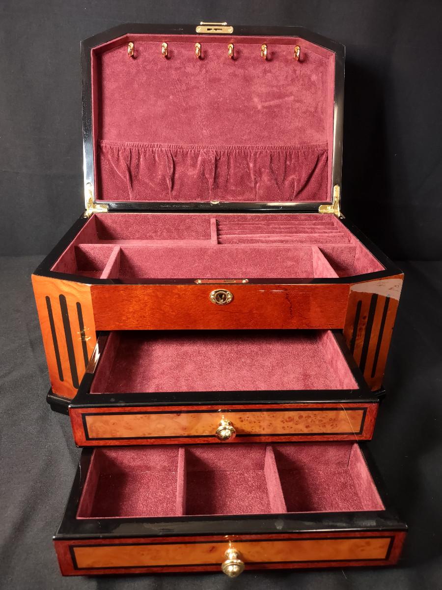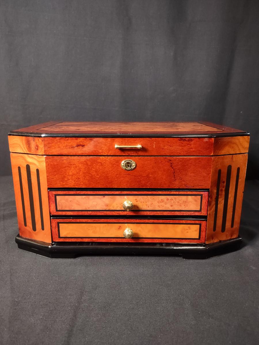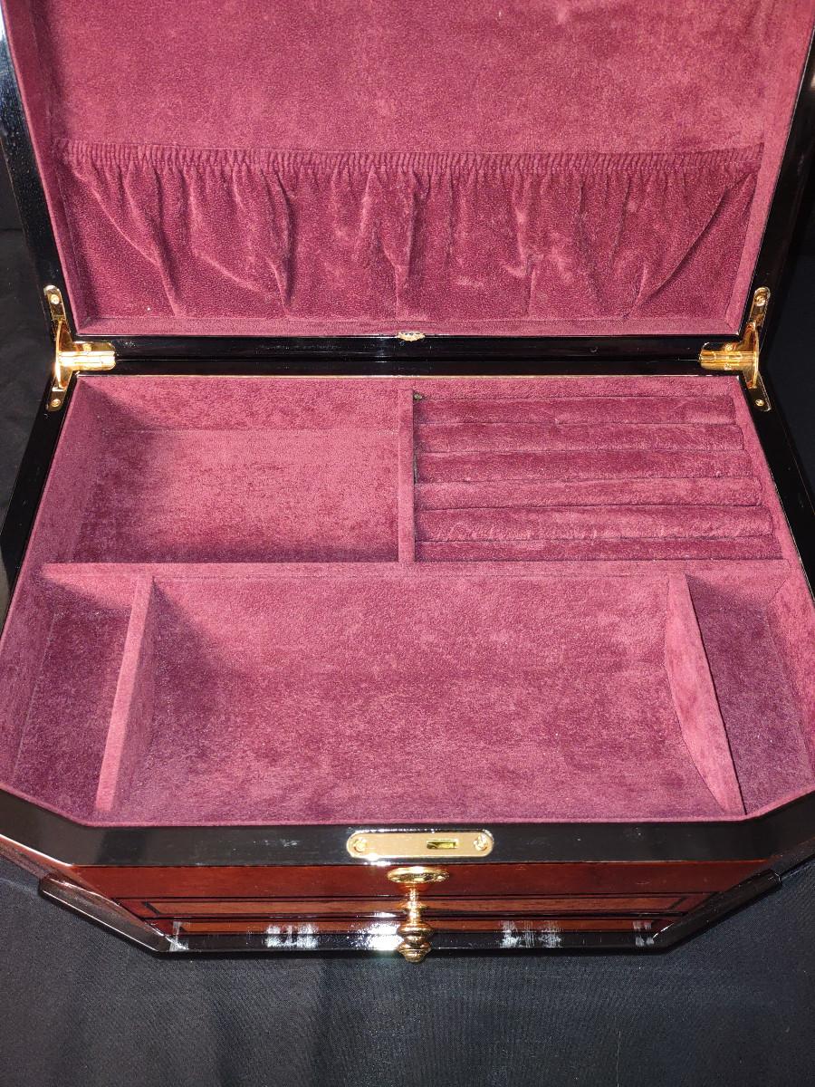 Beautiful Jewelry Box. Please see all pictures as they are the best representation of the items. The pictures show condition, measurements if taken, and what is included in the lot. Due to the large amount that we photograph and the time frame, we are not always able to take measurements. All items unless noted, are pre-owned and have been used. If you purchased furniture, you must bring help. We do not allow one person to carry large furniture out on their own. Bring help, tools and a truck for the safety of our client’s homes, and your personal safety. Company policy. Thank you.