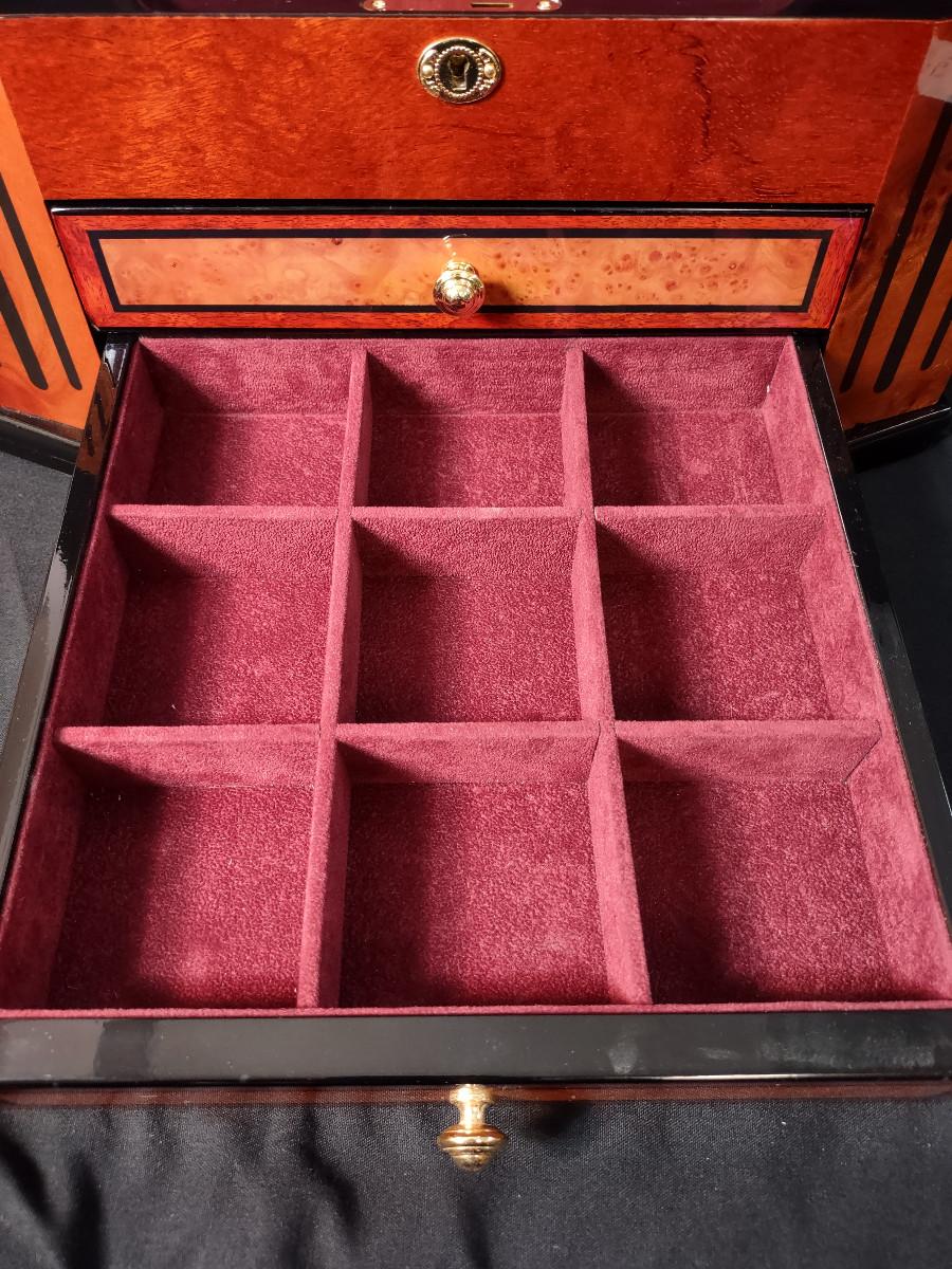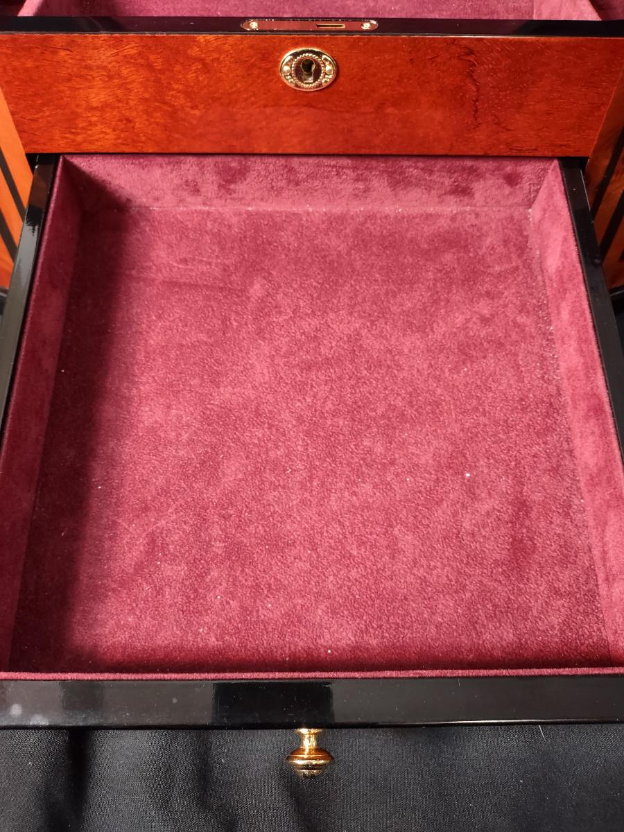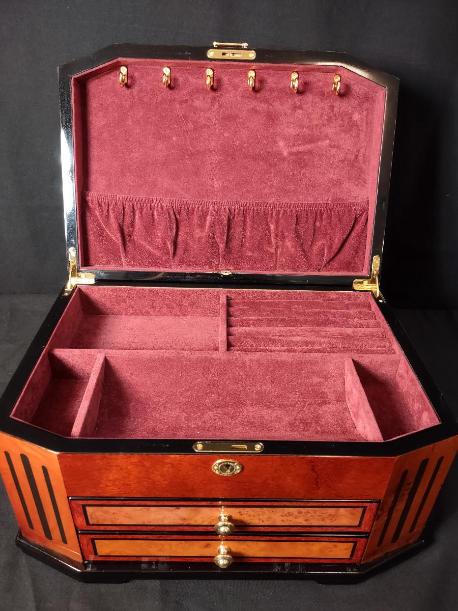Beautiful Jewelry Box. Please see all pictures as they are the best representation of the items. The pictures show condition, measurements if taken, and what is included in the lot. Due to the large amount that we photograph and the time frame, we are not always able to take measurements. All items unless noted, are pre-owned and have been used. If you purchased furniture, you must bring help. We do not allow one person to carry large furniture out on their own. Bring help, tools and a truck for the safety of our client’s homes, and your personal safety. Company policy. Thank you.