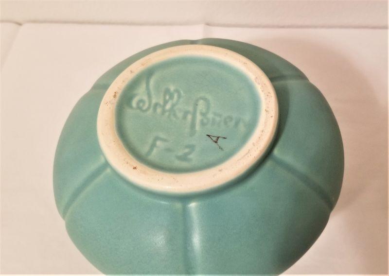 Fully marked on bottom - Weller F-2 - lovely muted matte finish, excellent condition. Stands 5" tall.