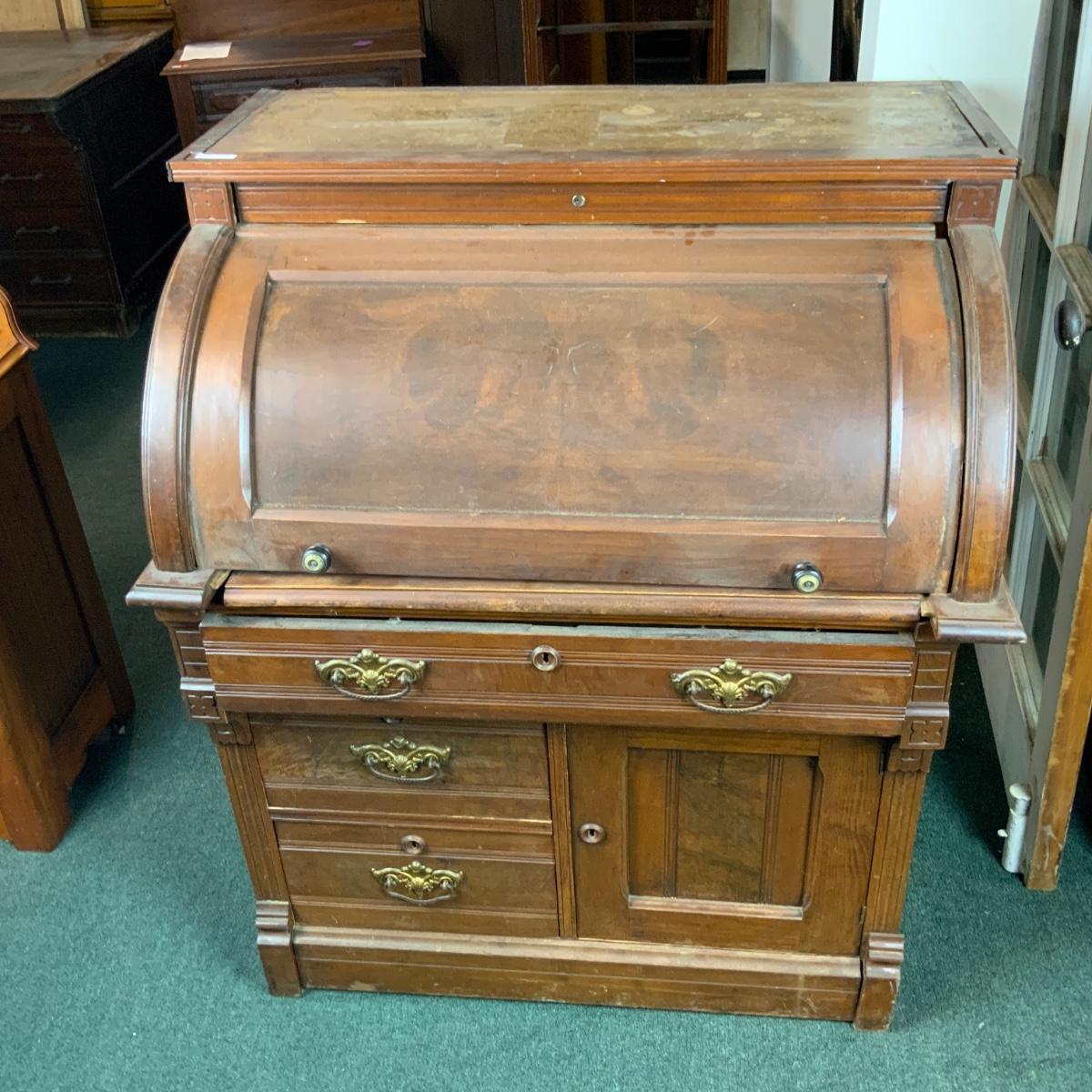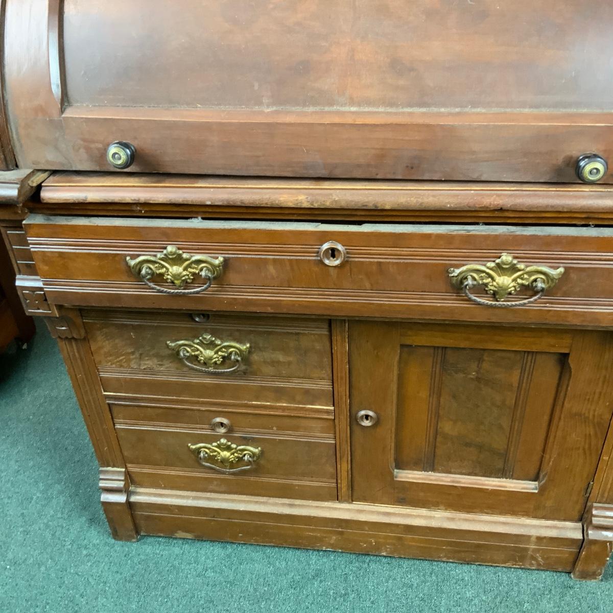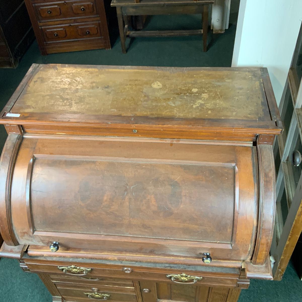 1800s Cylinder Desk. Profound piece. Fantastic for an executive at any level. //::\\ Please see photos for details and condition. No attempt has been made to hide any imperfections. All items listed in this auction are warehouse items, and need to be cleaned. A majority of the items need restoration as well. All items are sold AS IS and WITHOUT GUARANTEE. If you are uncertain about an item, DO NOT BID. Due to the nature of this online auction in-person inspection is HIGHLY recommended. All Sales are FINAL. Pick Up Times are FIRM. Please confirm with your own schedule that you can pick up in the scheduled times listed in the Terms and Conditions. Any questions please message the auctioneer. DO NOT Contact The Harp Gallery.