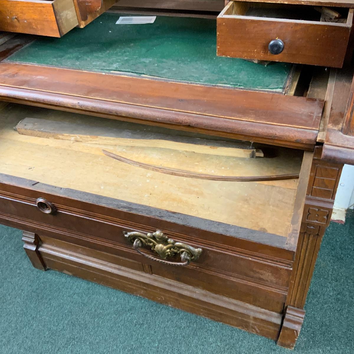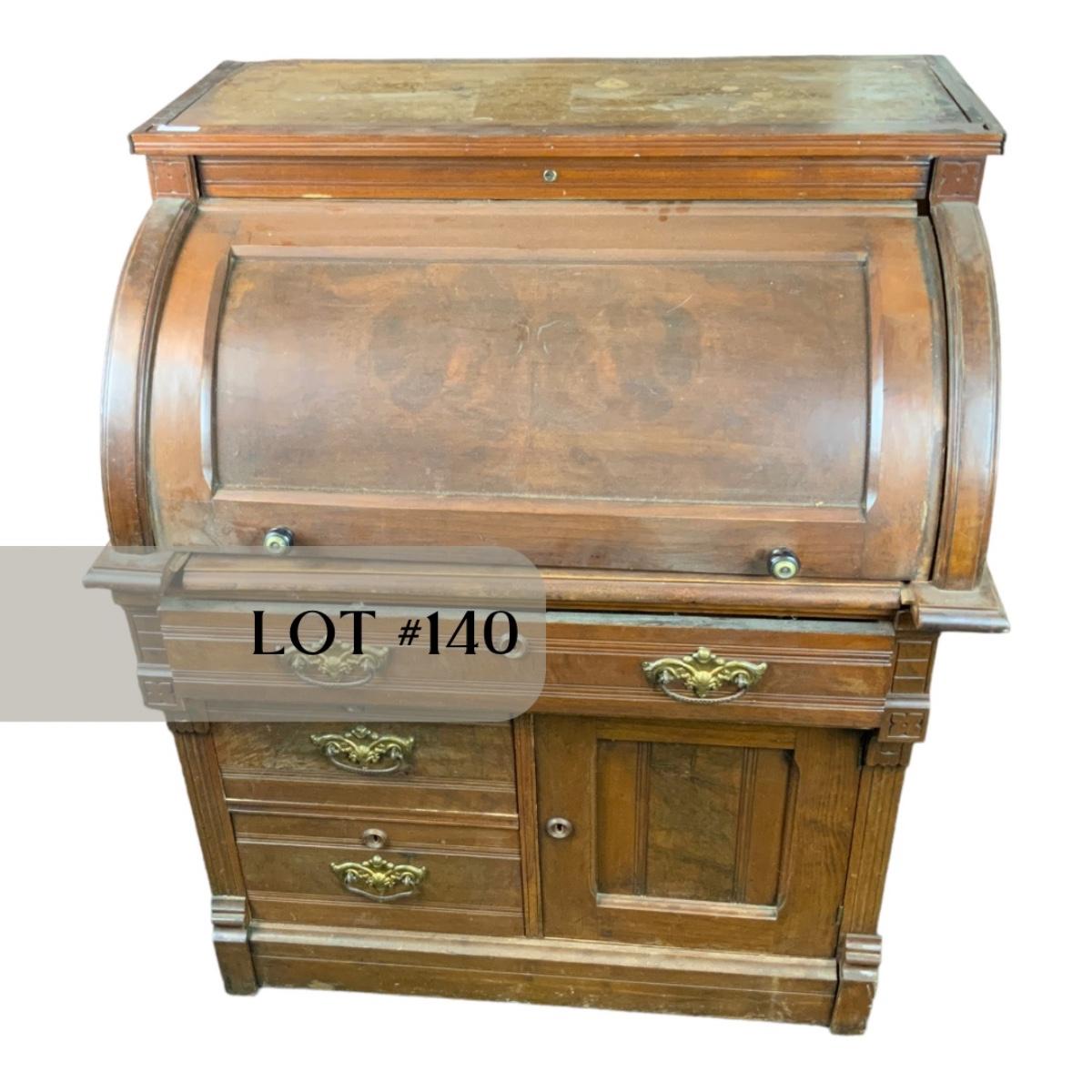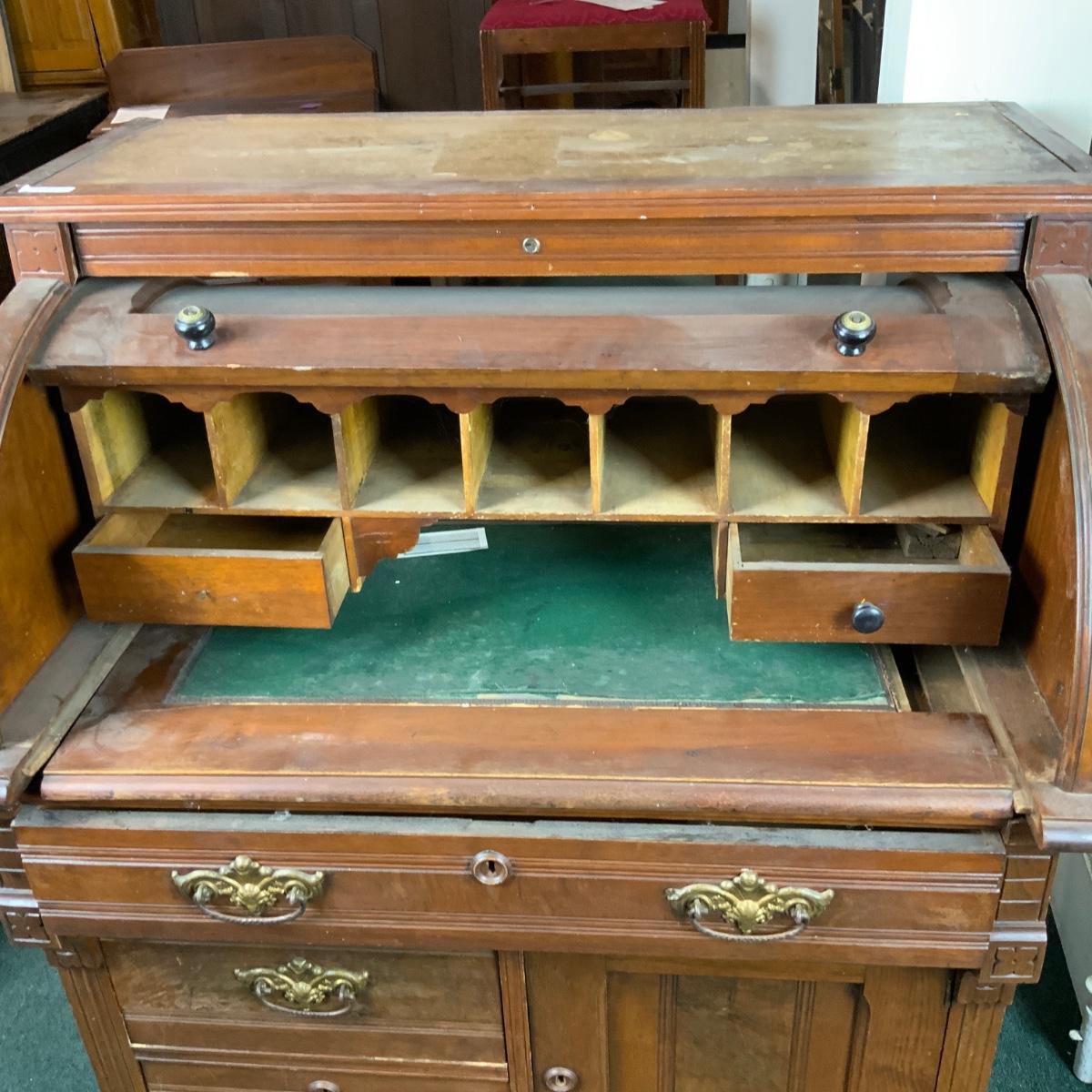 1800s Cylinder Desk. Profound piece. Fantastic for an executive at any level. //::\\ Please see photos for details and condition. No attempt has been made to hide any imperfections. All items listed in this auction are warehouse items, and need to be cleaned. A majority of the items need restoration as well. All items are sold AS IS and WITHOUT GUARANTEE. If you are uncertain about an item, DO NOT BID. Due to the nature of this online auction in-person inspection is HIGHLY recommended. All Sales are FINAL. Pick Up Times are FIRM. Please confirm with your own schedule that you can pick up in the scheduled times listed in the Terms and Conditions. Any questions please message the auctioneer. DO NOT Contact The Harp Gallery.