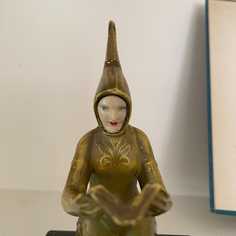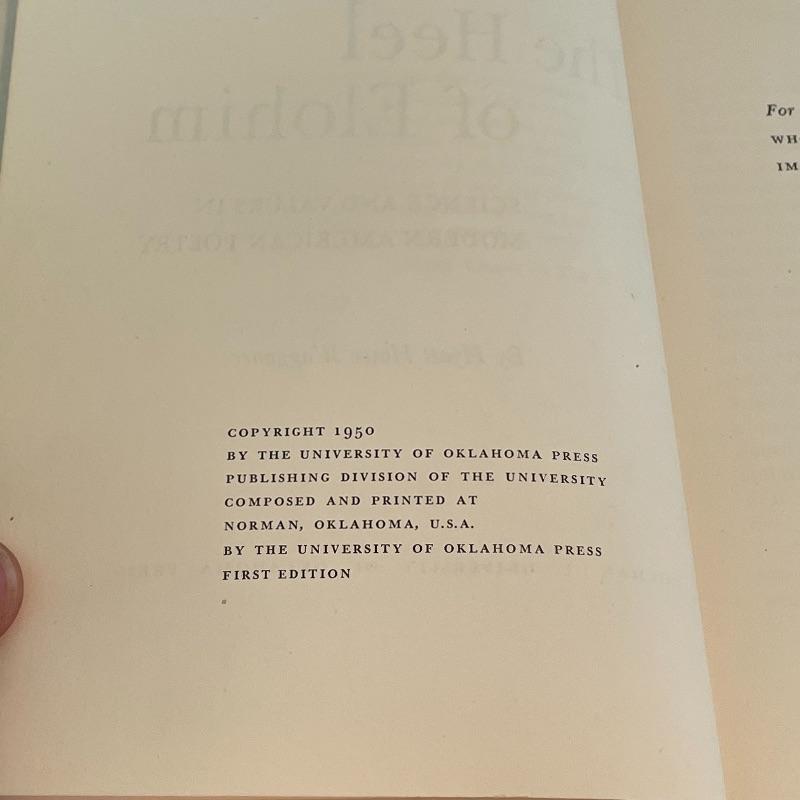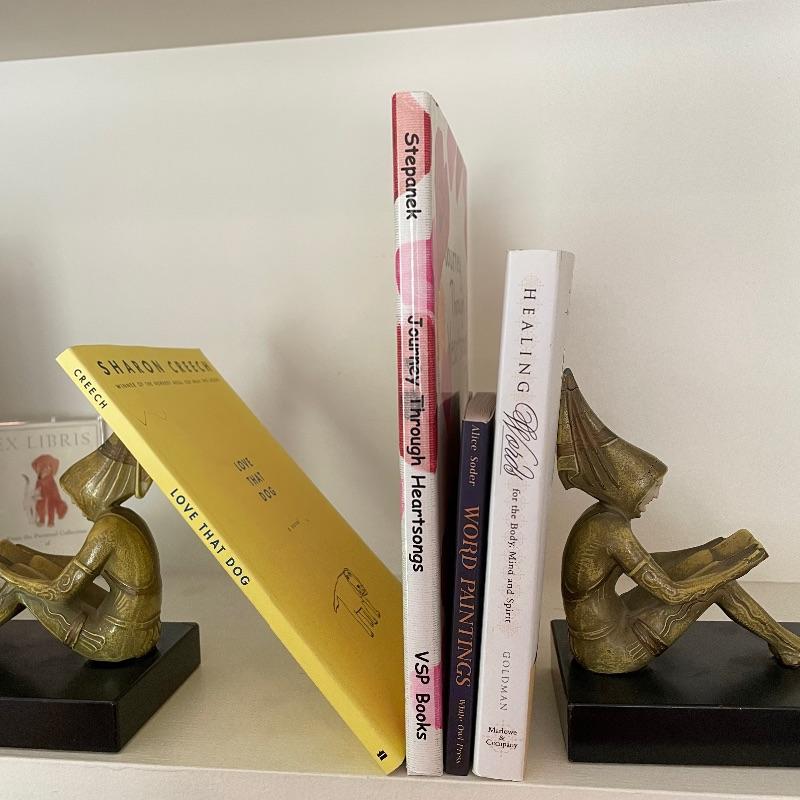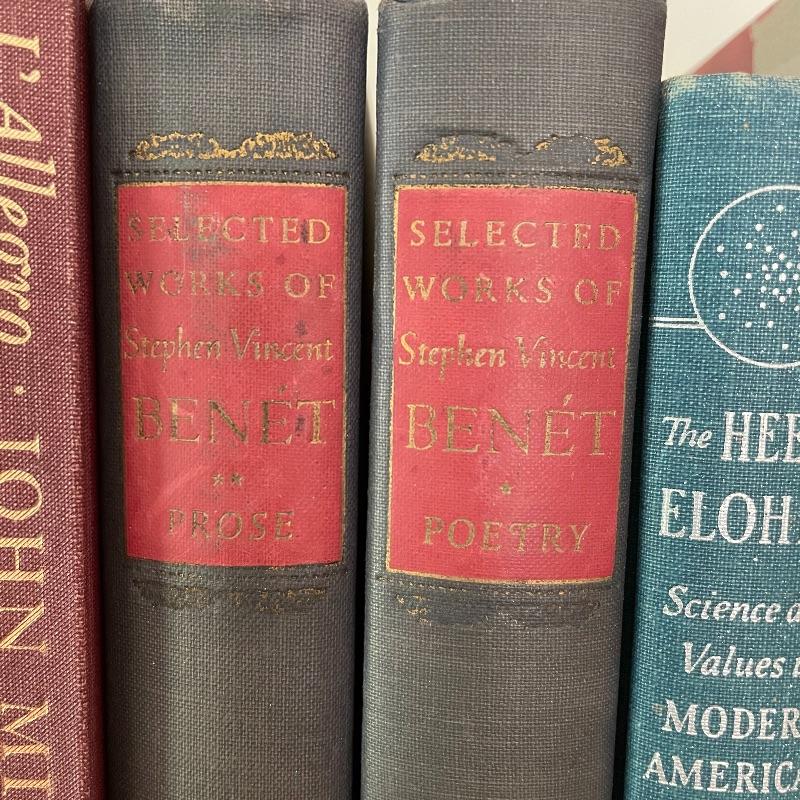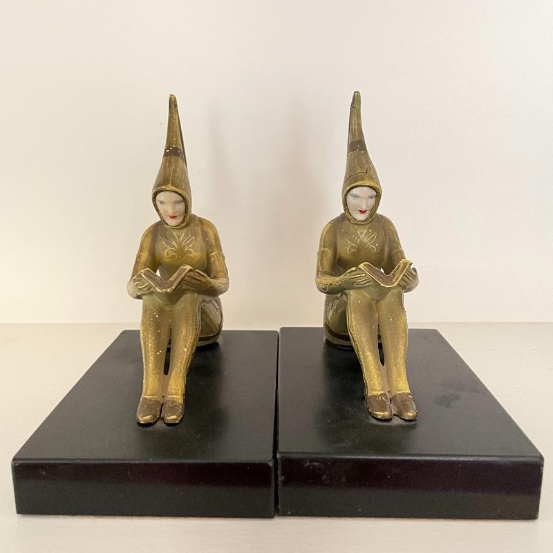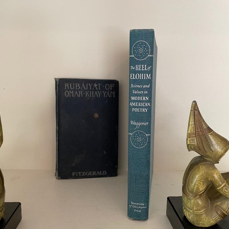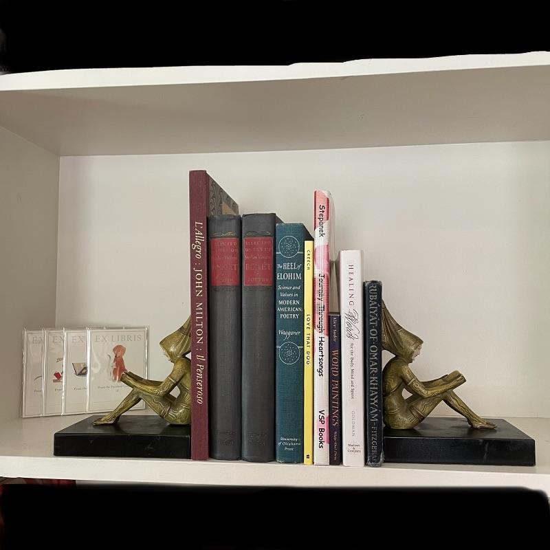 This collection is full of wonder! Lot features a first edition The Heel of Elohim by Hyatt Howe Waggoner. Lot also contains more poetry, new and old. If you already own these books, bid just for the awesome heavy bookends. These are very similar to JB Hirsch Gerdago pixie Art Deco bookends, but we found no identifiable markings. It is possible they are the same metal art on marble bases. These two measure approximately 5” x 3.25” x 5.5”. Shipping available.