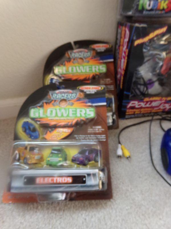 NEW POWER JOY CLASSIC TV GAME, RUNIK GAME (NIB), 2 GLOWER ELECTRONIC CARS (NIB)