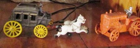 TOYS HAVE BEEN STORED IN A SHED FOR A LONG TIME. SOME HAVE LOSS OF FINISH/PAINT OR ARE RUSTY IN PLACES