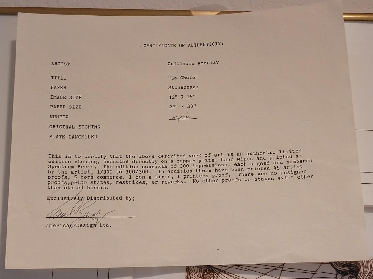 Lot 140: Guillaume Azoulay "La Chute"  Pencil Signed, Numbered and Titled with Certificate of Authenticity
