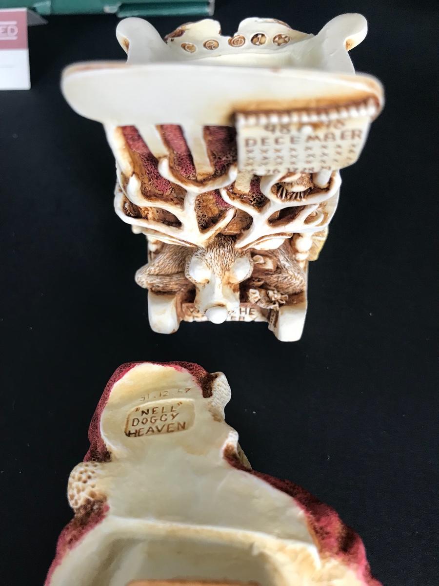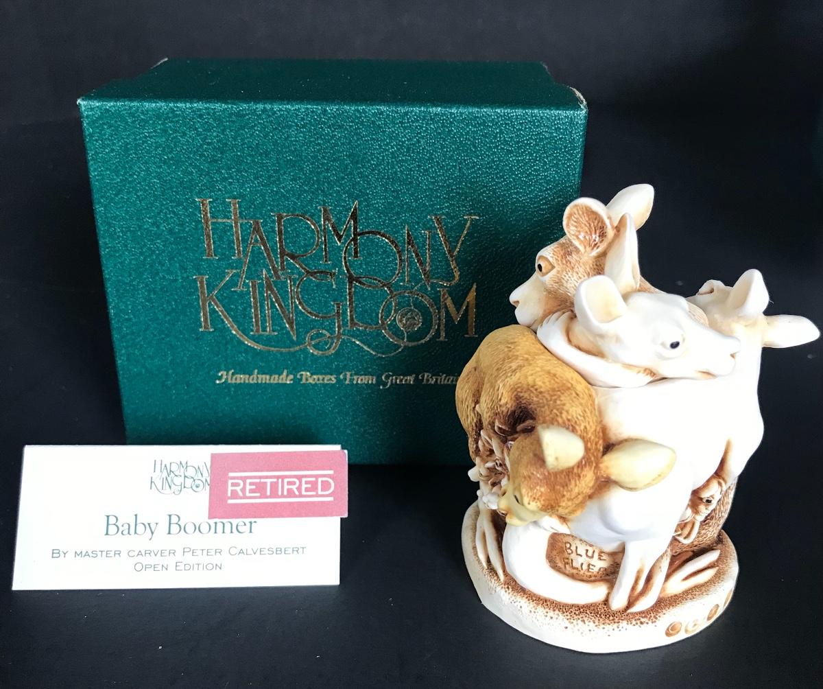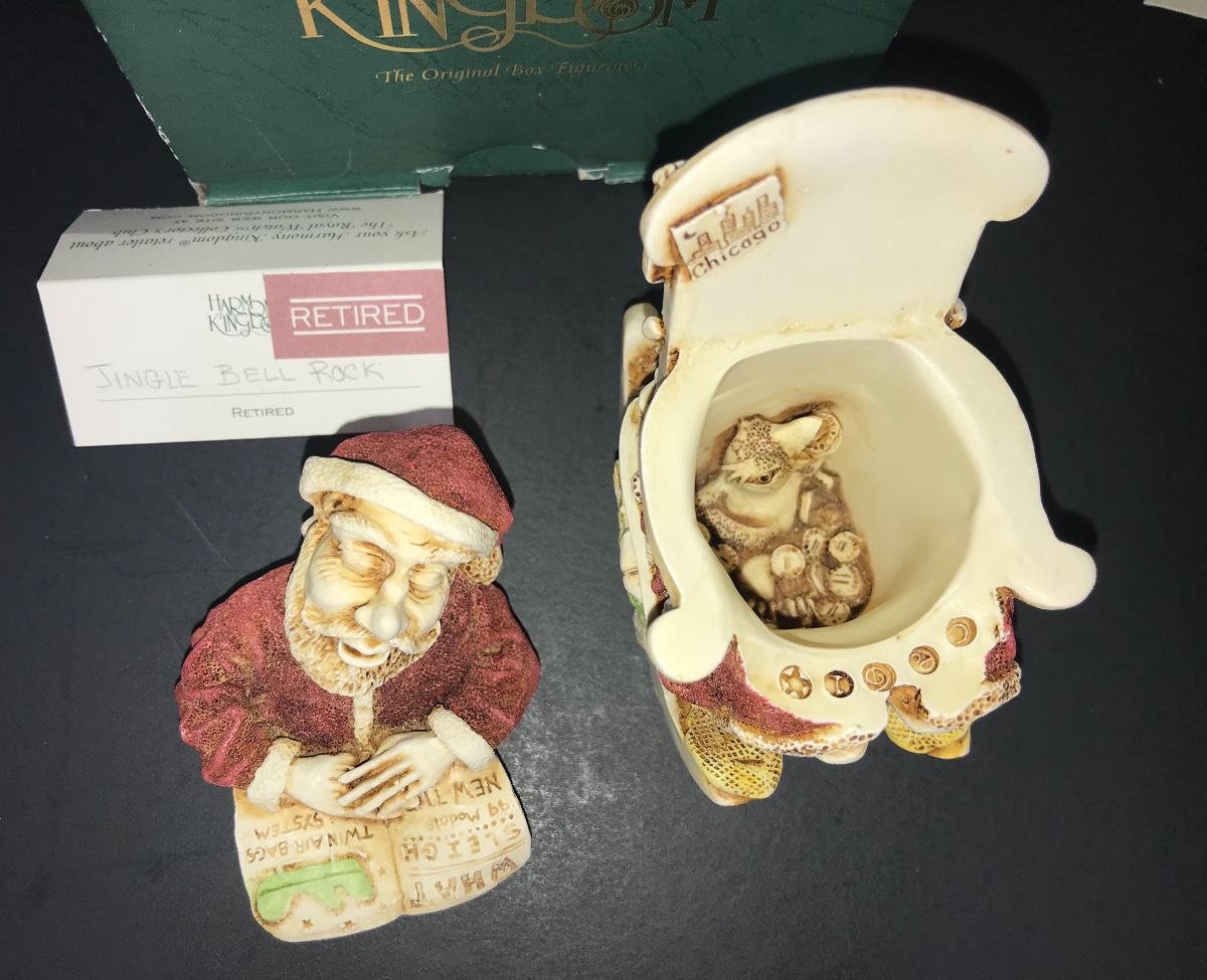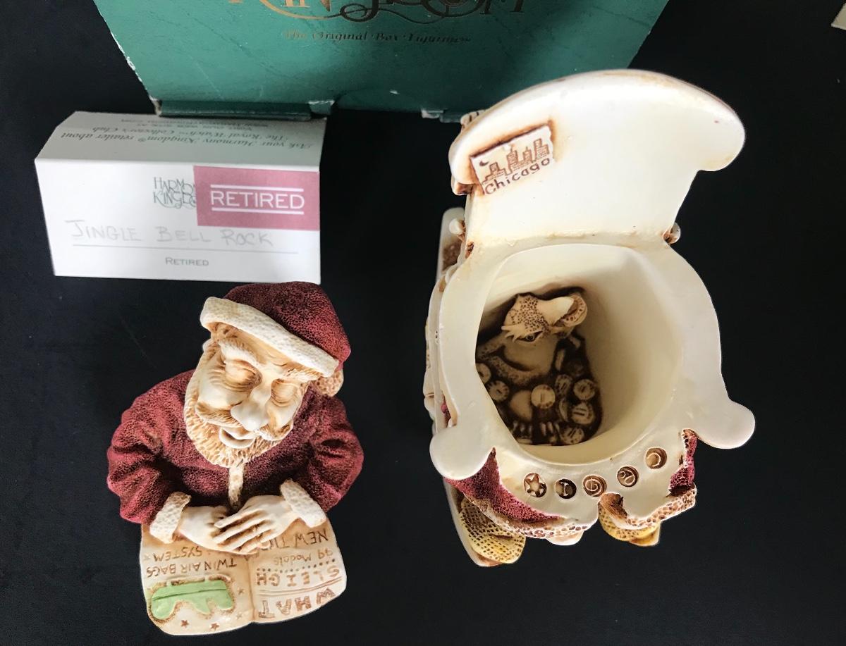 Baby Boomer was carved in 1997, and is the second version. Waddles is a solid, as is Harry the rabbit. And Jingle Bell Rock is the first of the Treasure Jest box figurines to incorporate motion.