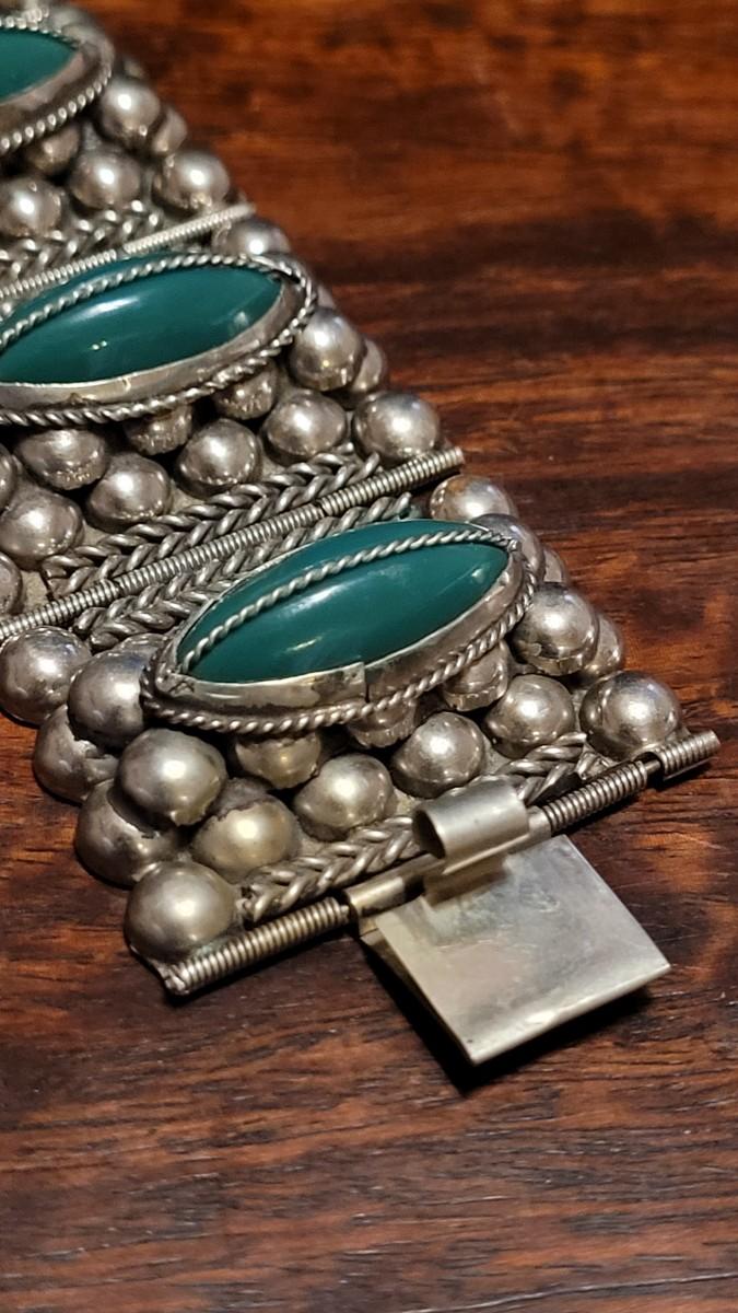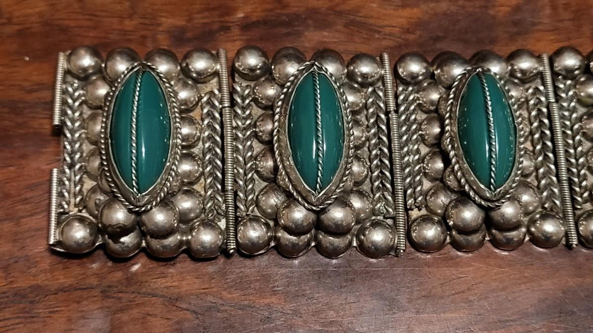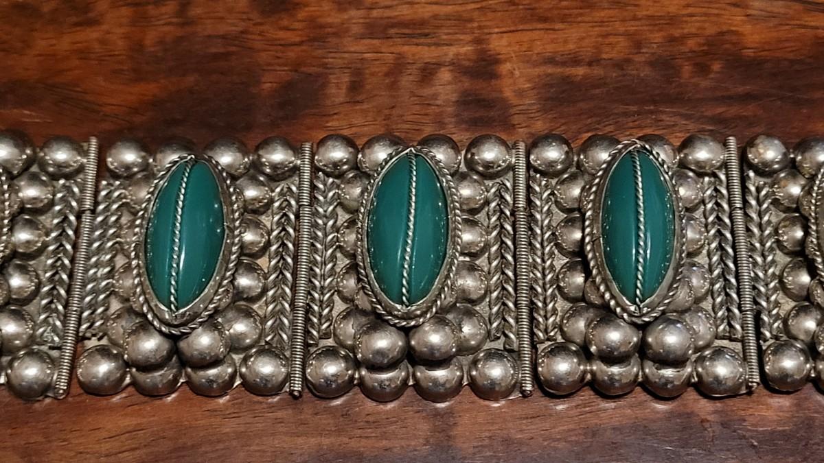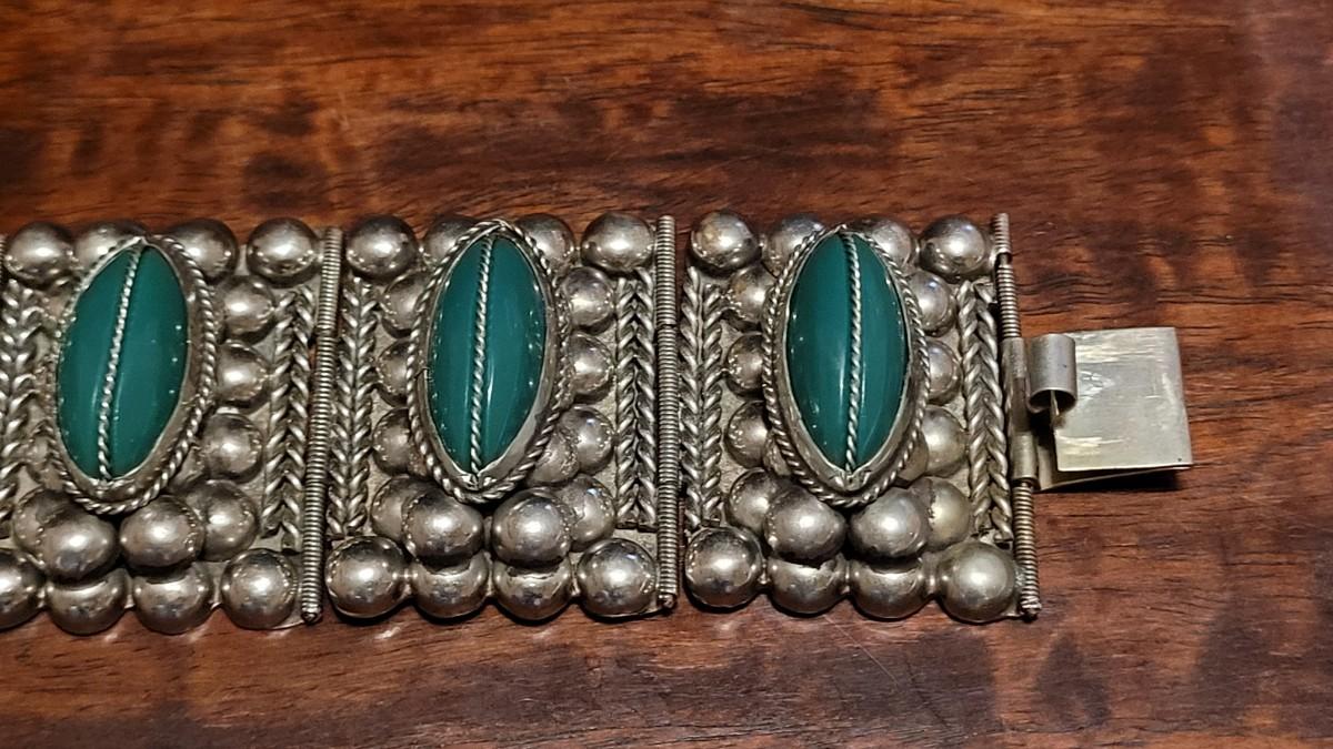 This piece is marked by the mark is smudged and incomplete in the stamping. This bracelet has all the Taxco markers however there is not a legible Taxco mark.