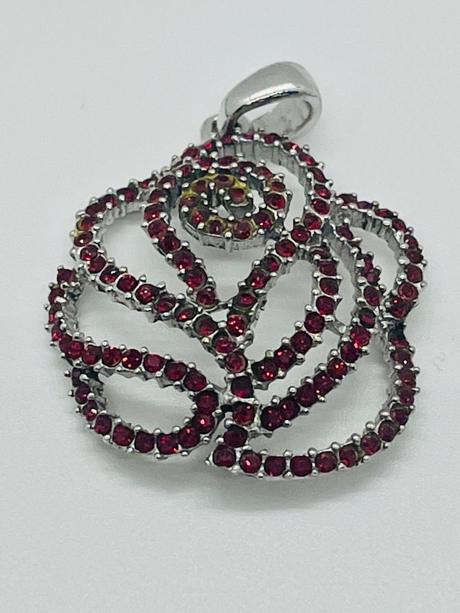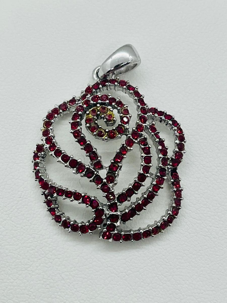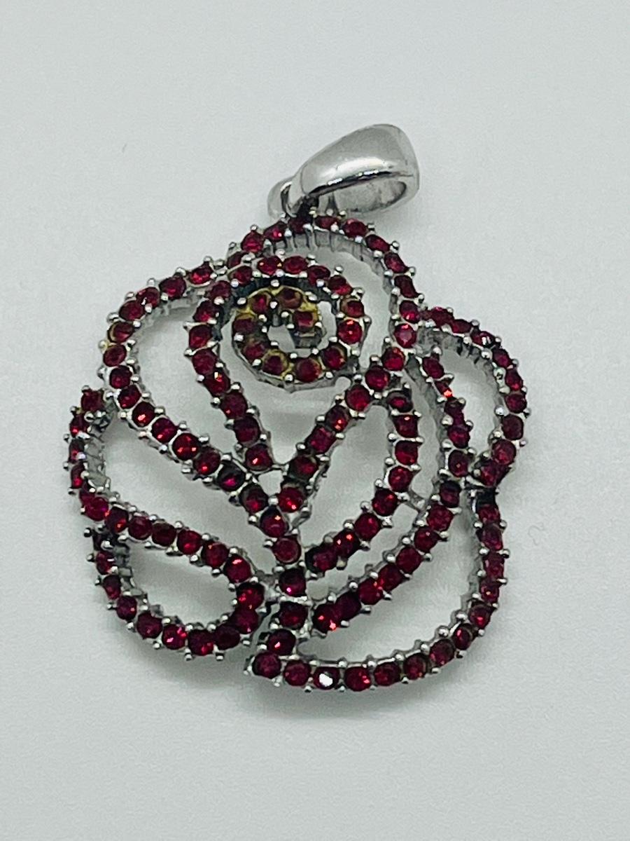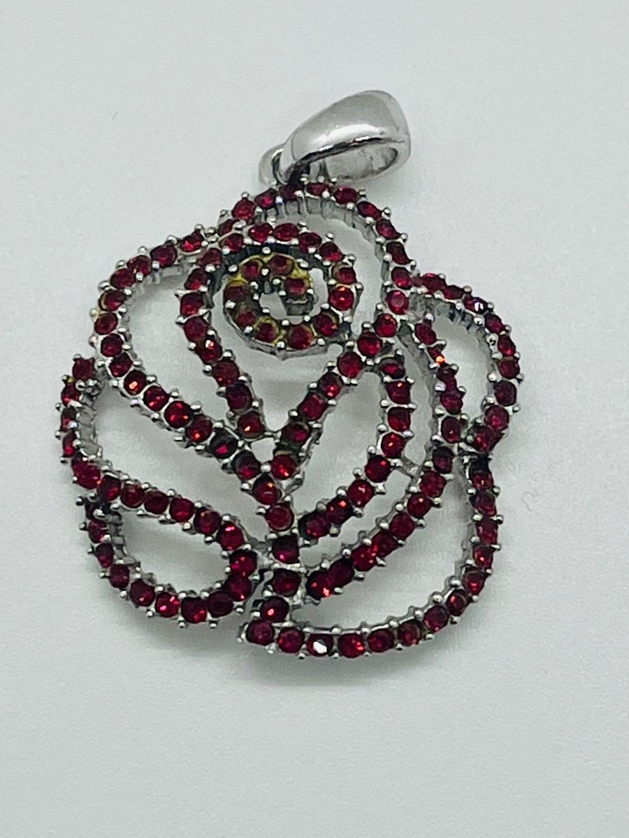 Lot 140: NF 925 Thailand Red Rose Pendant of Garnet Chips