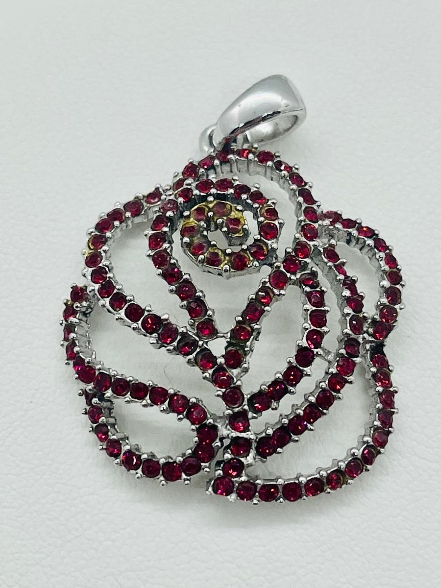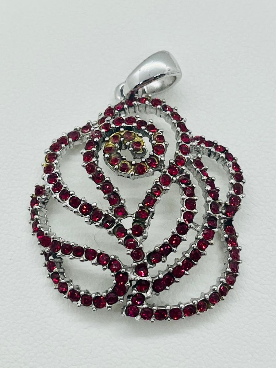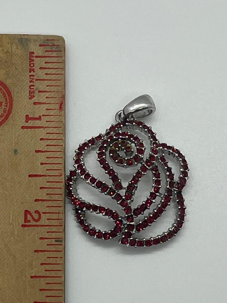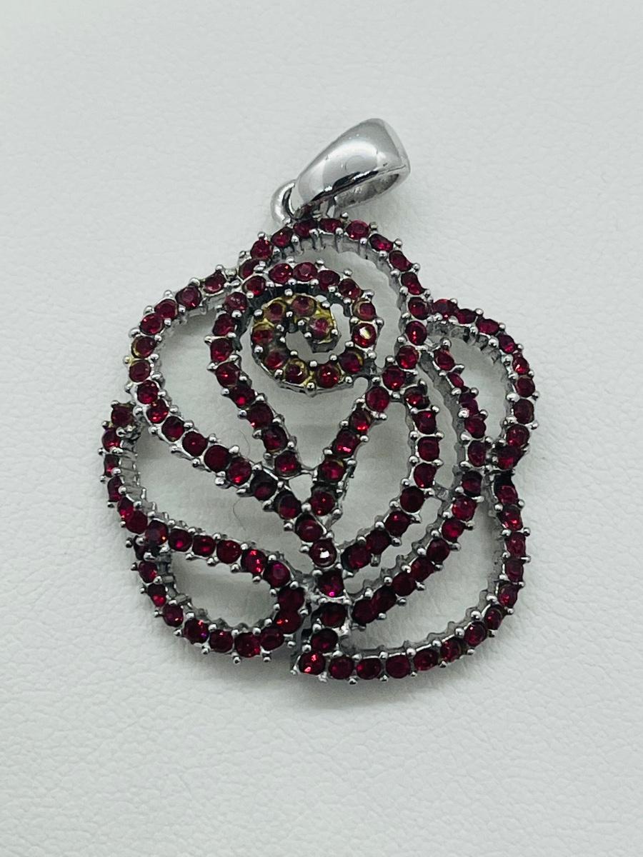 Lot 140: NF 925 Thailand Red Rose Pendant of Garnet Chips
