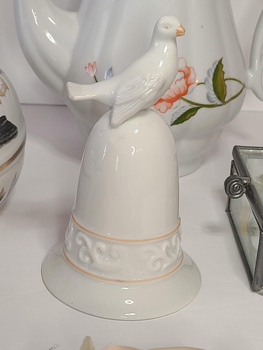Lot 140: Lenox Bird, Glass Trinket Box, and More