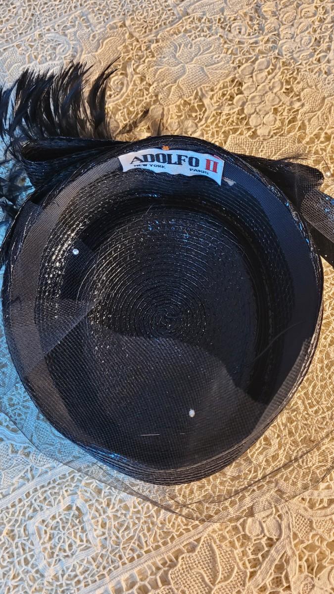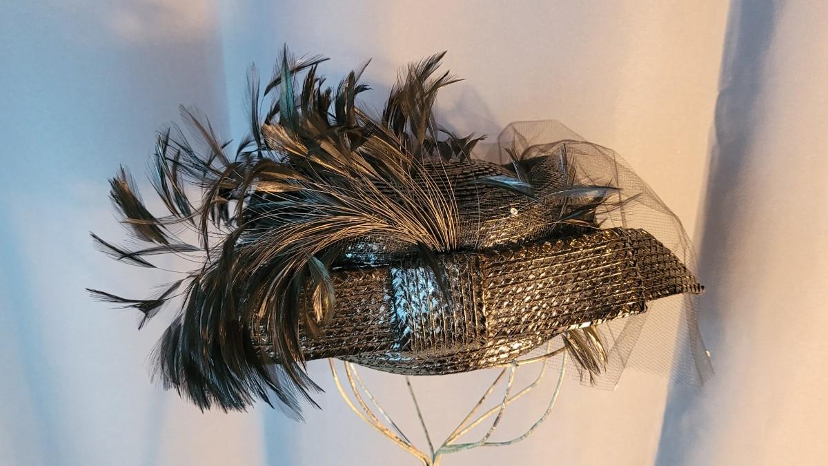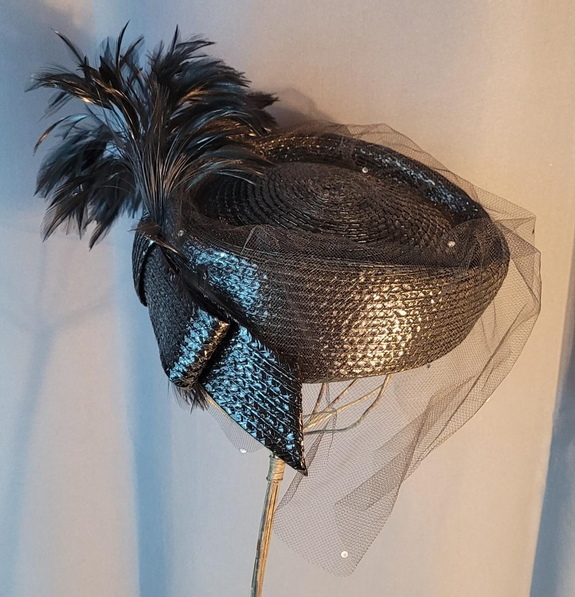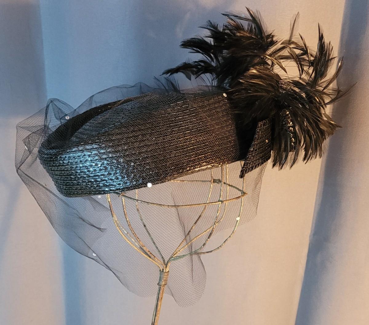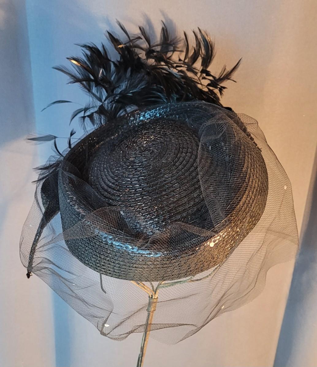 Lot 140: Vintage Black Bow, Feathers and Netting Hat