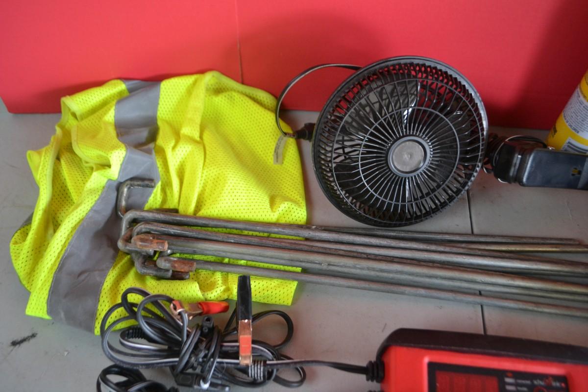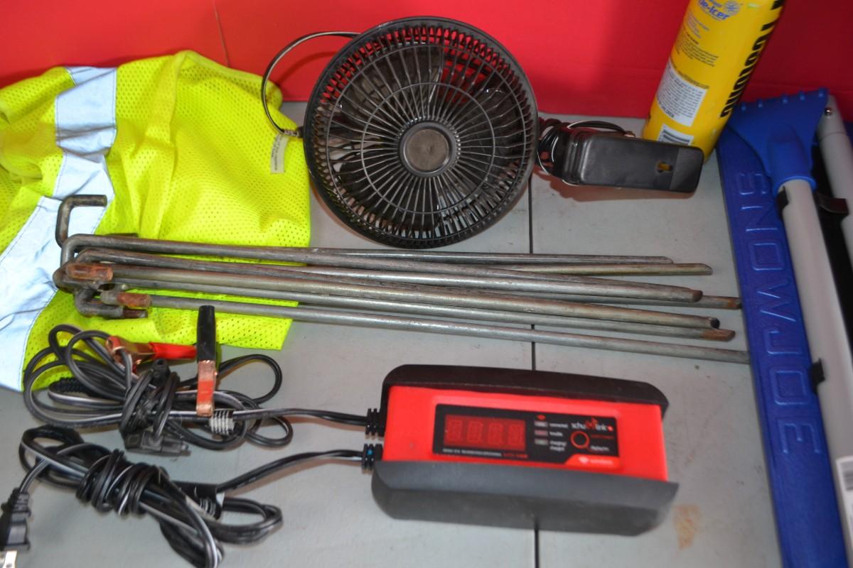 LOT 140. BATTERY CHARGER, MISC ITEMS