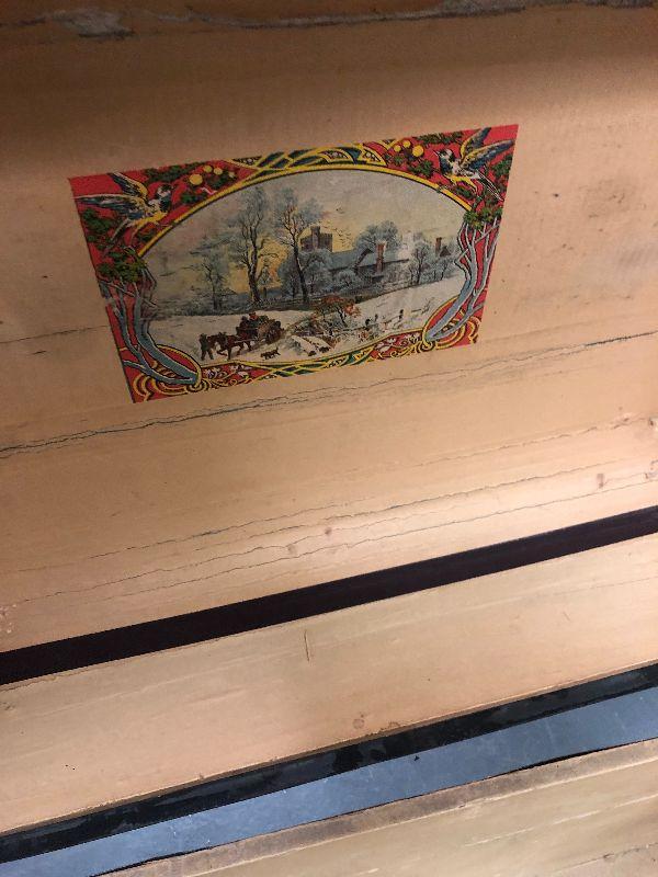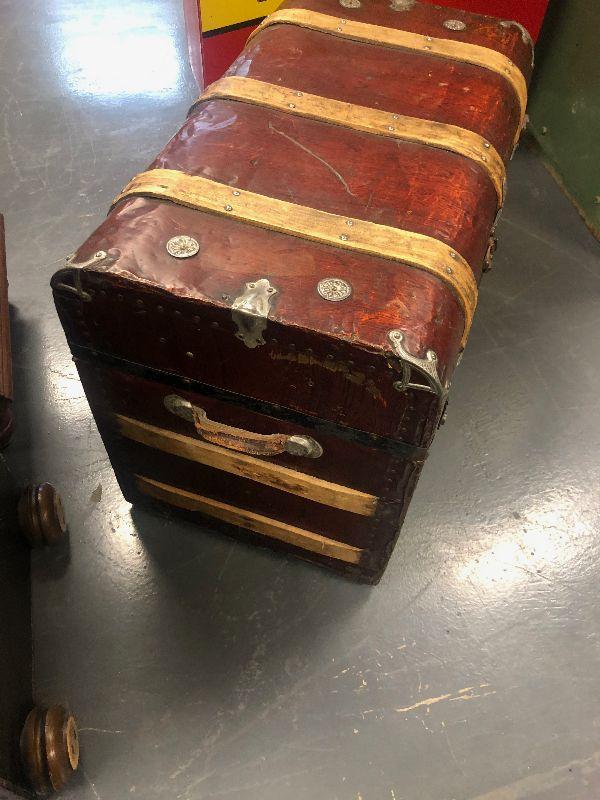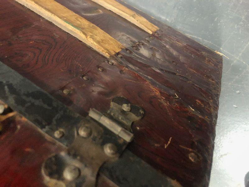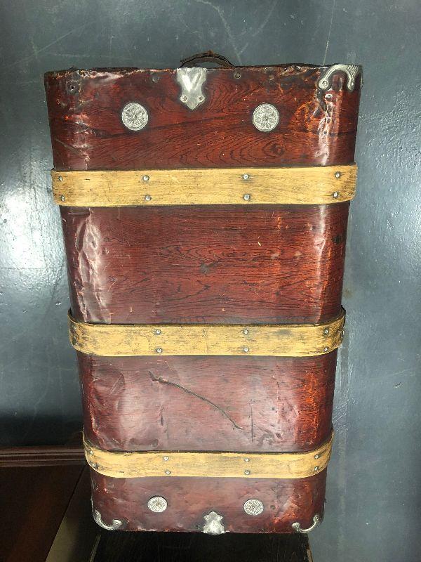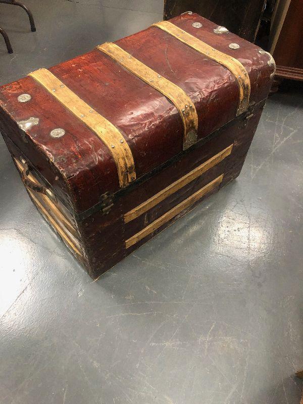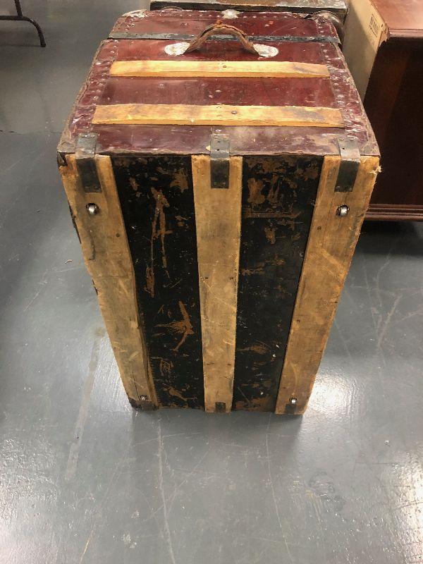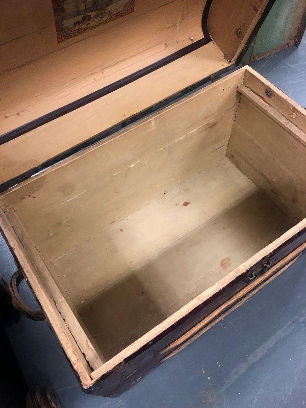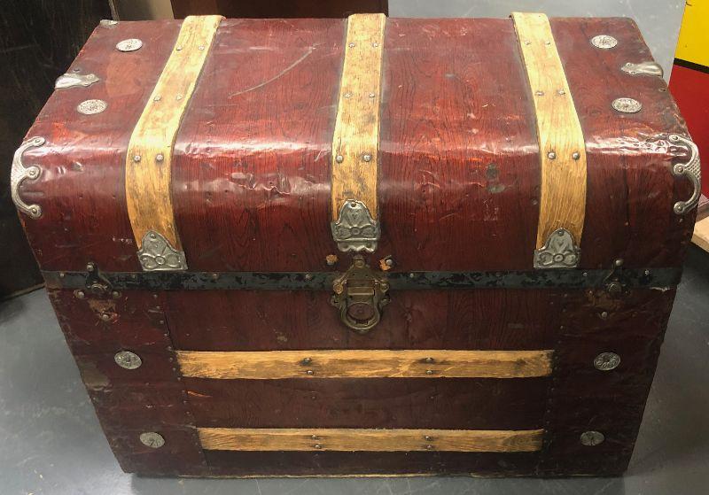 Lot #140 Antique Tin Steamer Trunk, Artgrained