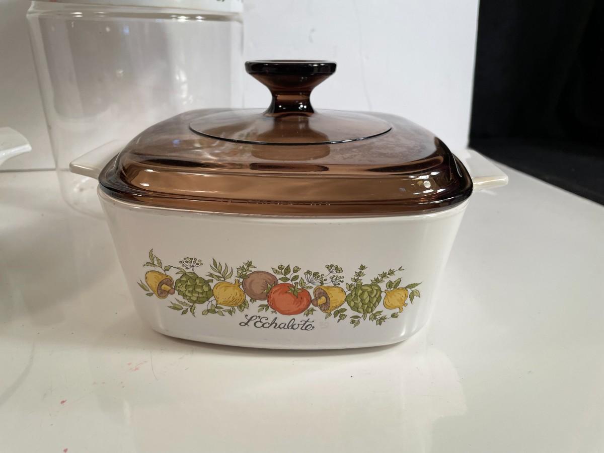 Lot 140 Corning Ware with Lids. Mushroom & Vegetable Pattern.