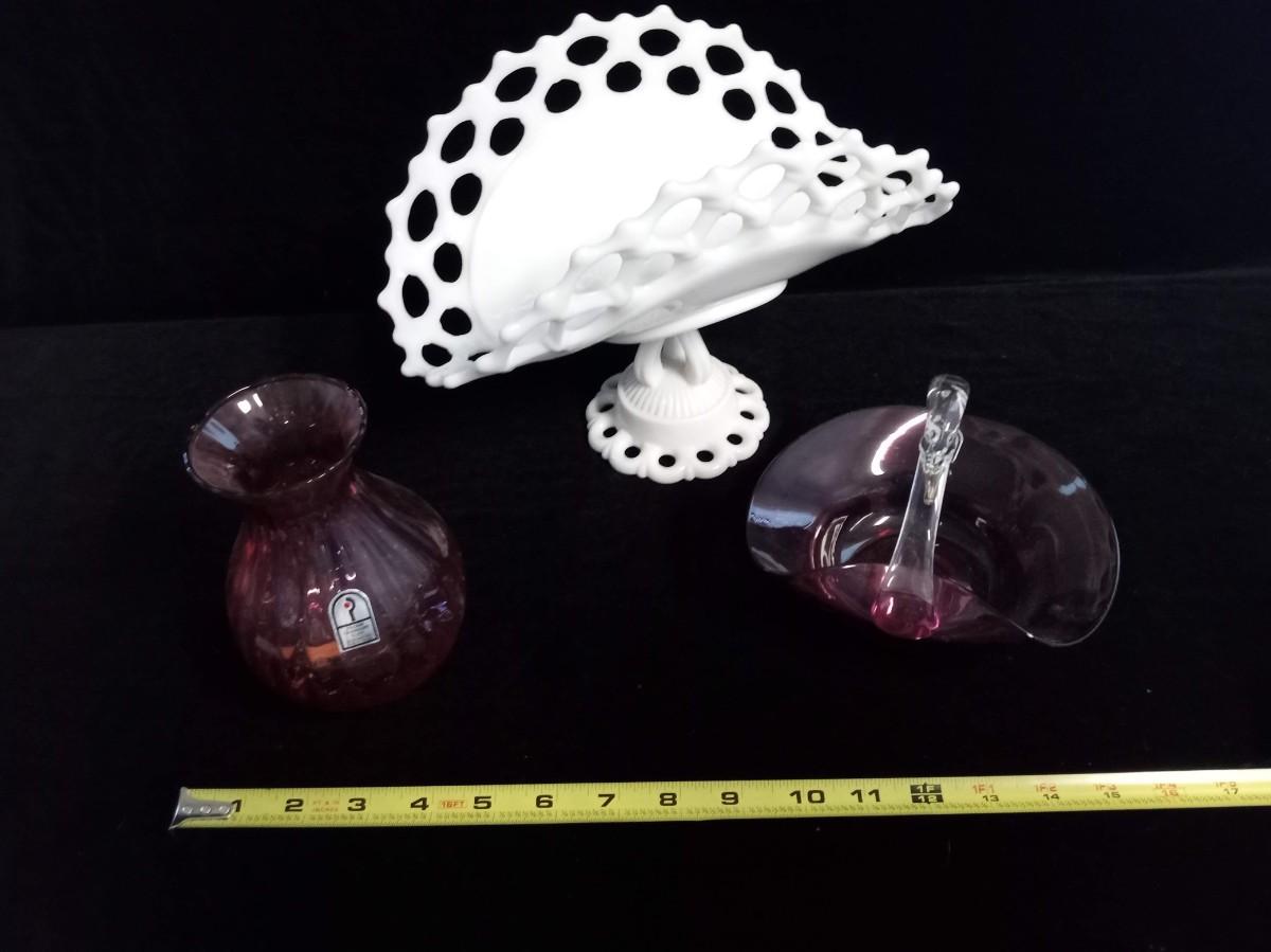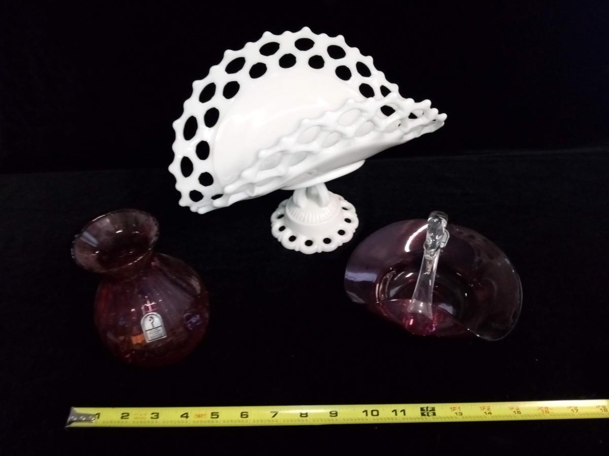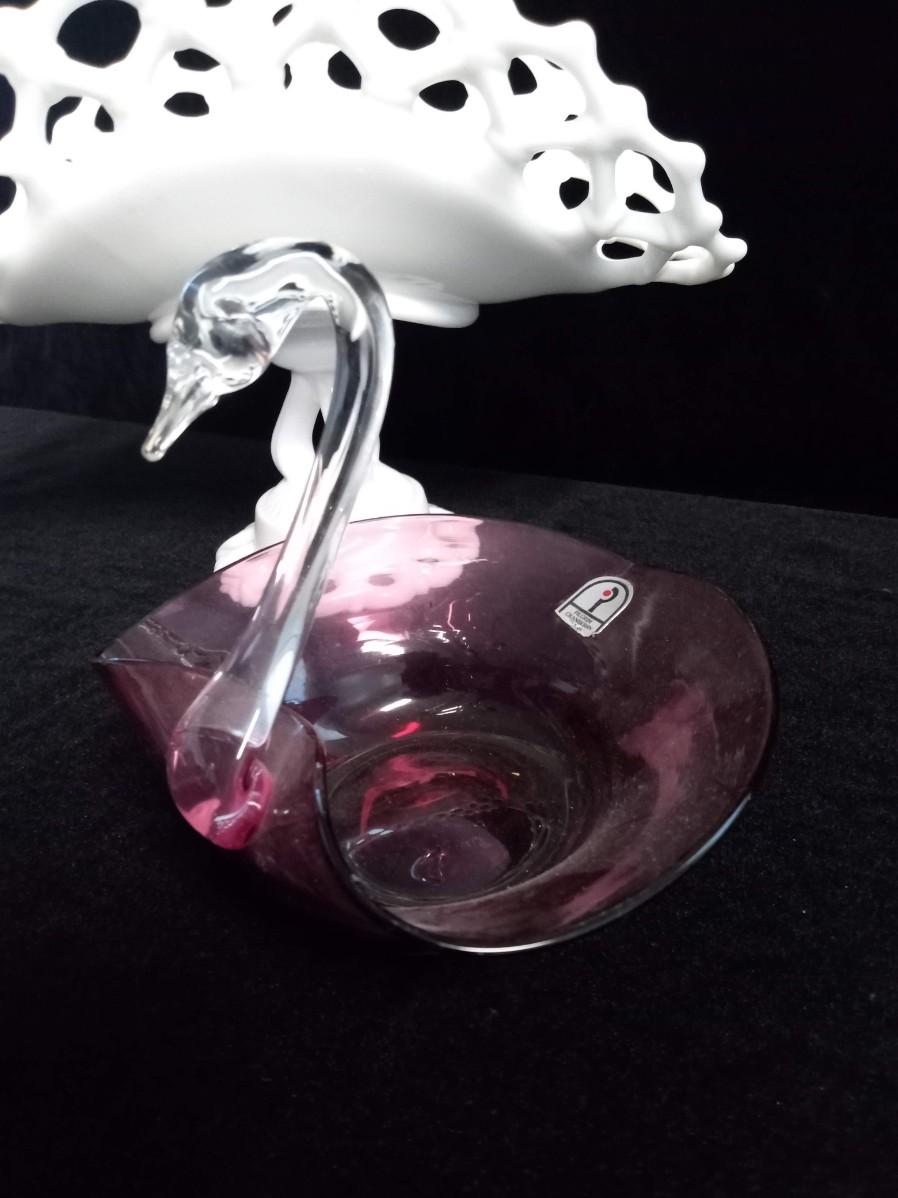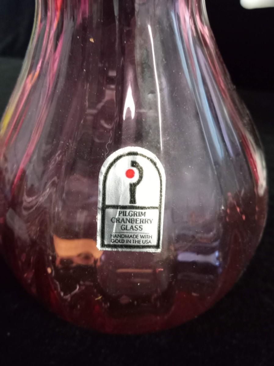VASE AND SWAN MADE BY PILGRIM CRANBERRY GLASS - HANDMADE WITH GOLD.