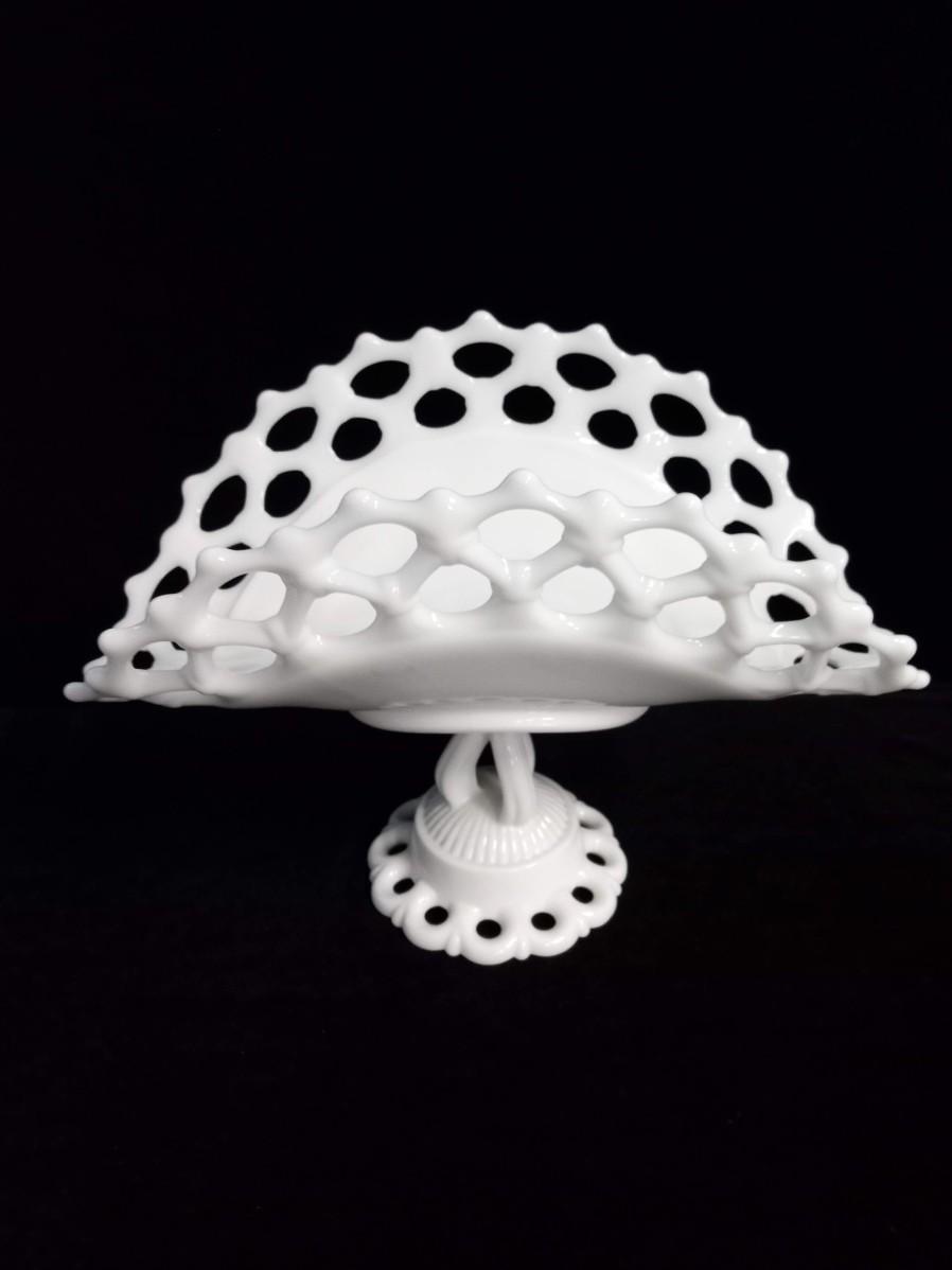 11" WESTMORELAND MILK GLASS PEDESTAL FRUIT BOWL