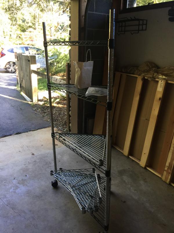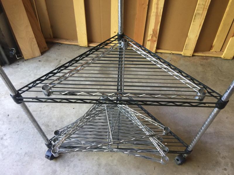 Lot 140: Four Tier Chrome Corner Wire Shelving Unit