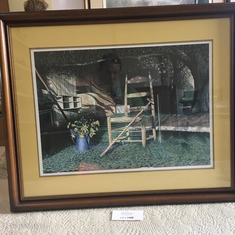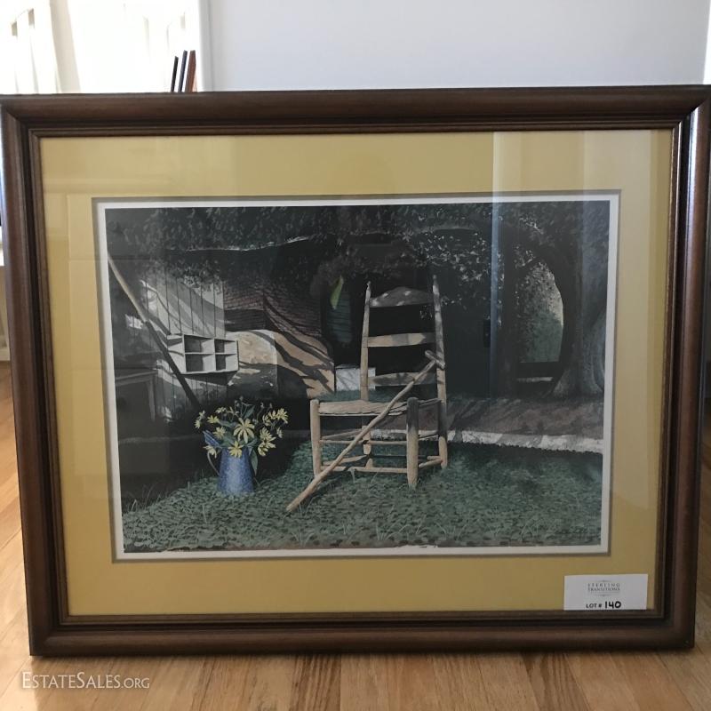 Mr. Petrea's Cane & Chair in their backyard. Signed & numbered 857/1000. Professionally framed with double mats: 34.5" x 27.5"