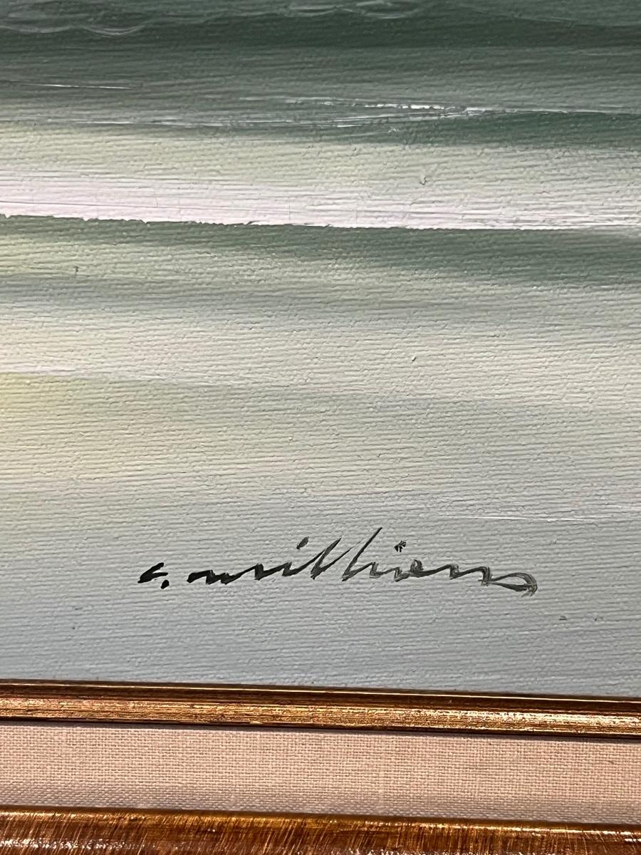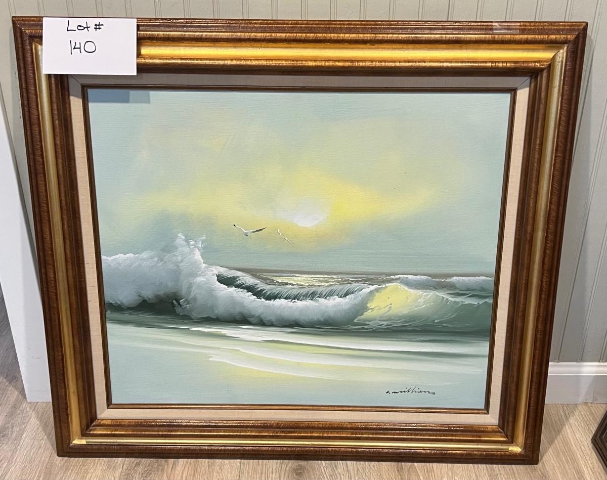 Framed and signed painting measures 28 inches tall and 31 1/2 inches wide