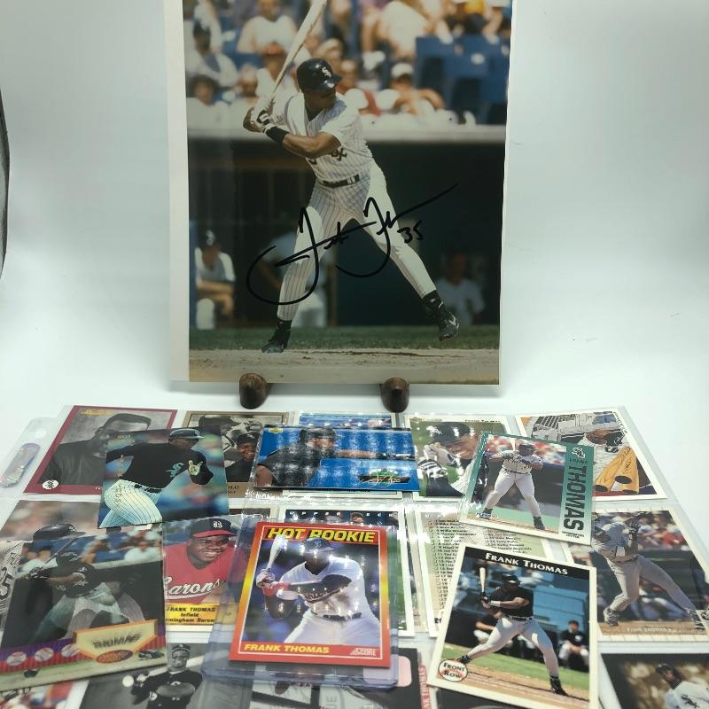 Super sweet Frank Thomas signed photo with COA plus some single cards including a Hot Rookie card