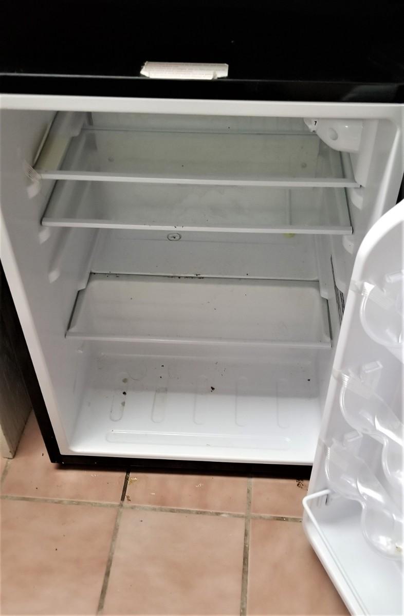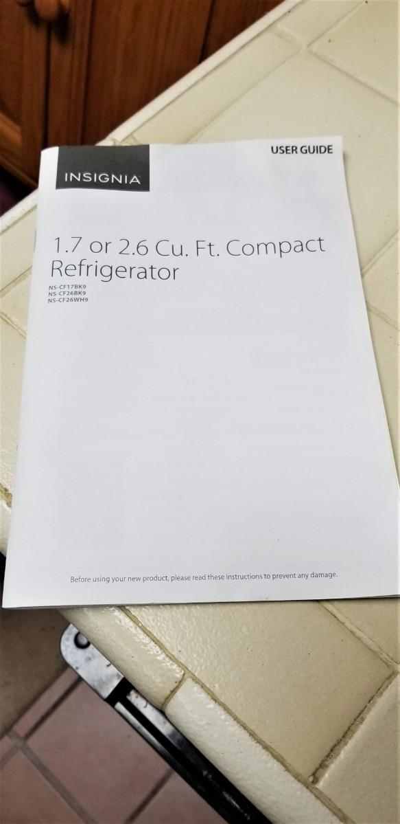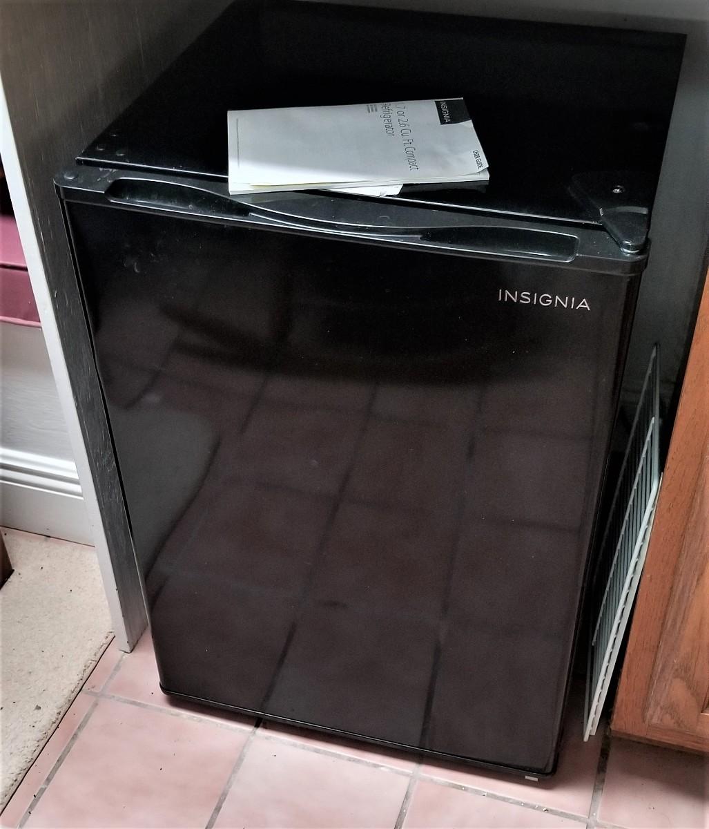 Perfect for a home bar or outdoor kitchen - Insignia portable refrigerator with book - works fine. 27" tall, 18.5" across.