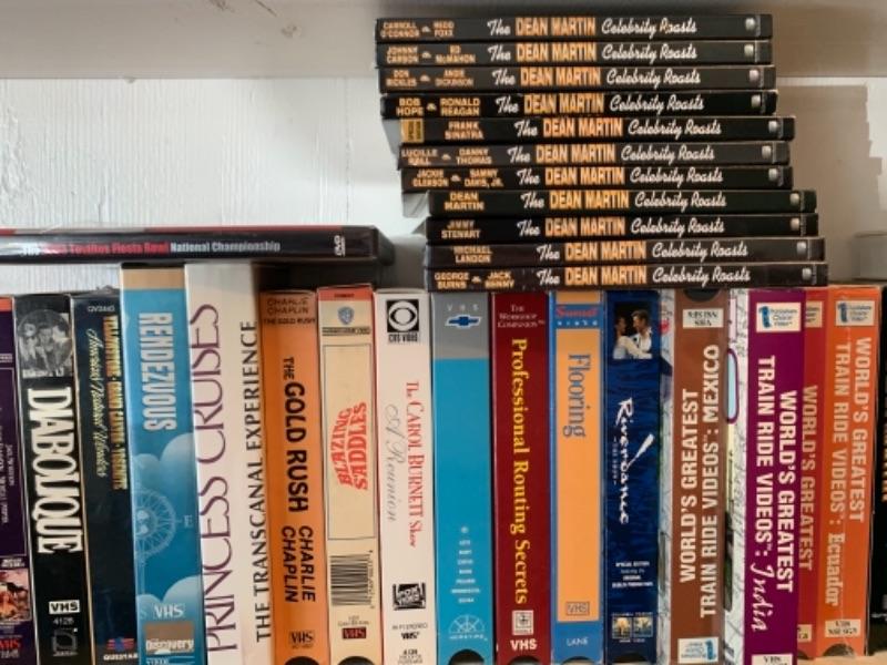 Lot 140. Large assortment of DVDs, VHS tapes (includes Dean Martin roast), books, etc.--$15