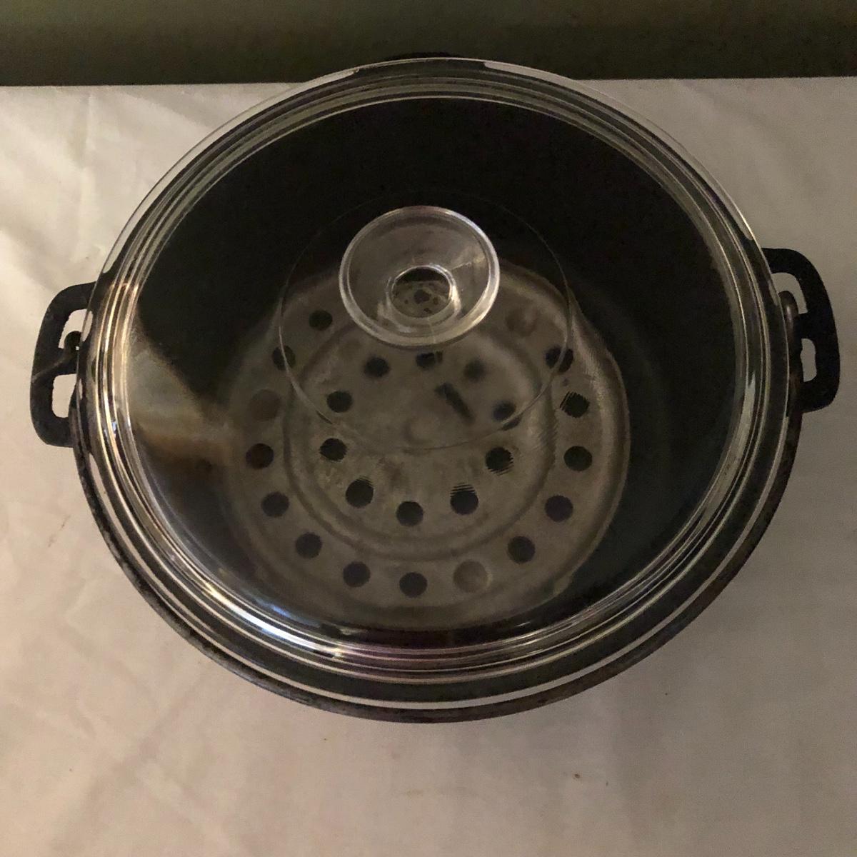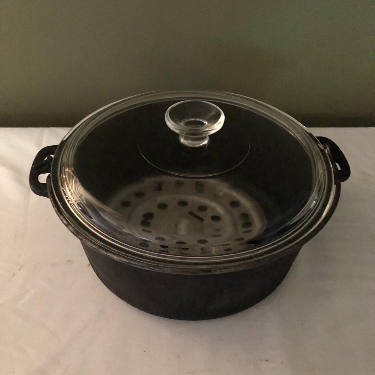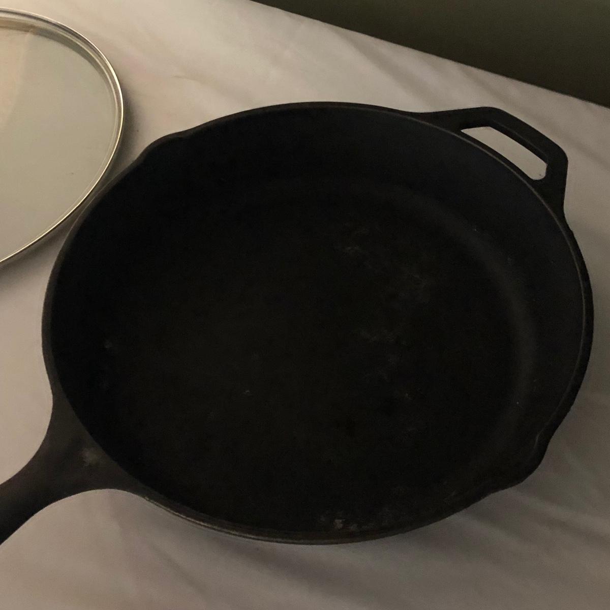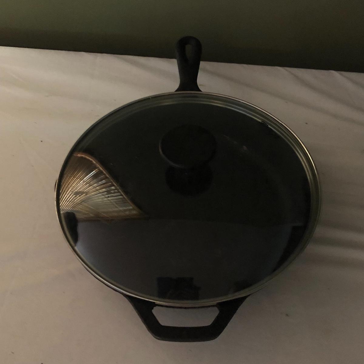Enjoy cooking with this cast iron lot! It includes two Lodge 10.5 “ skillets (one with lid), one 5 quart pot (with lid), one griddle and one bacon crisper. Local pick up only.