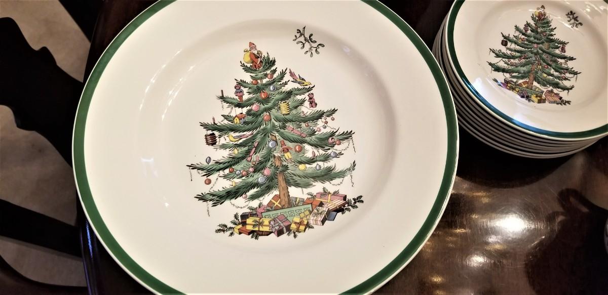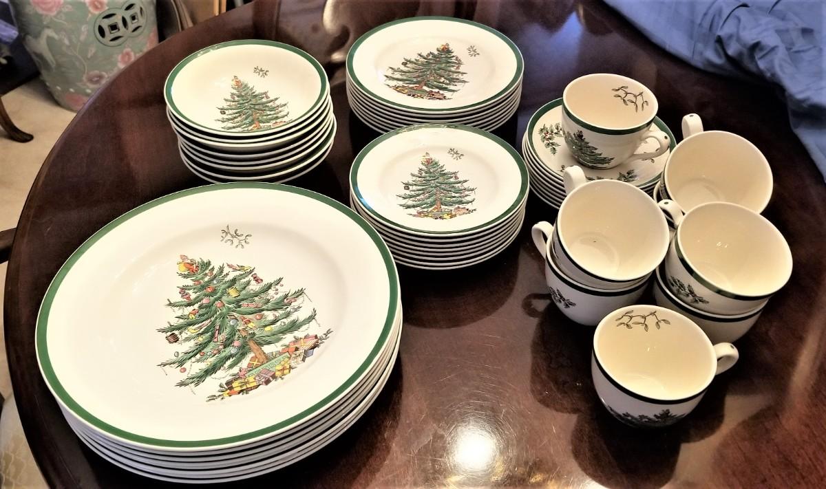 Lot #140  Nice lot of SPODE china in the "Christmas Tree" pattern