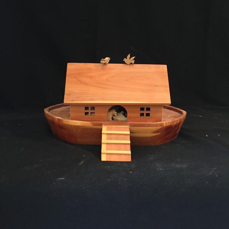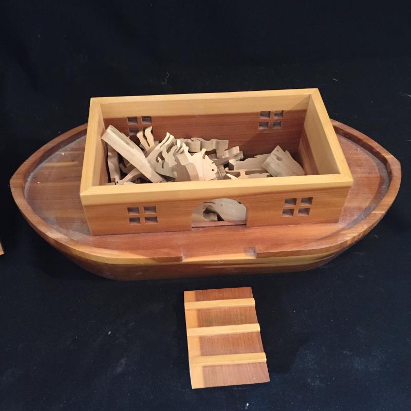 Charming wooden Noah’s Ark with Wooden Animals. Arc Measures 16” x 8.5”.