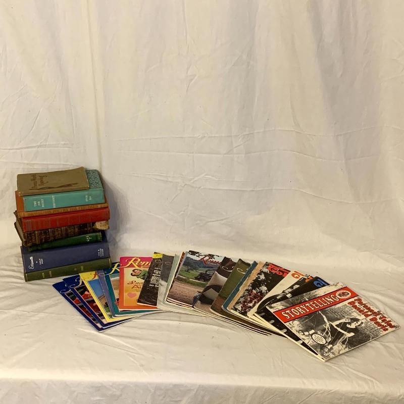This lot includes seven vintage-antique hardcover books, one paperback, and a stack of magazines. The books are mostly poetry-related and includes The Dramatic Works of Ben Jonson and Beaumont Fletcher, Volume 4 from 1811. The magazines are mostly Goldenseal (about West Virginia traditional life) and Reminisce “The Magazine That Brings Back the Good Times”. Shipping available.