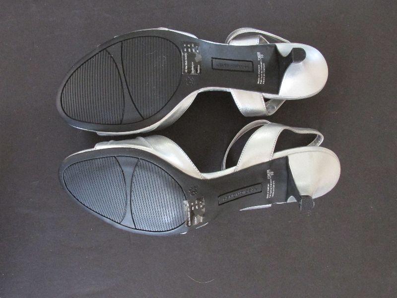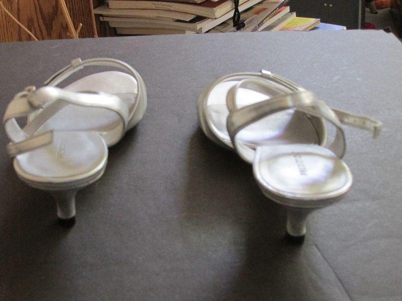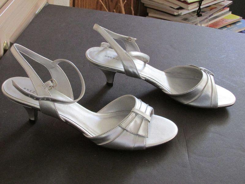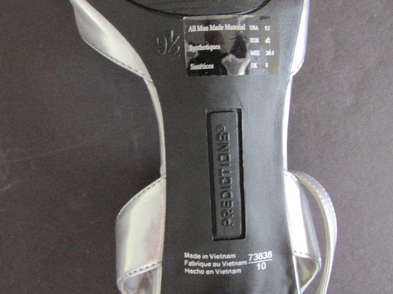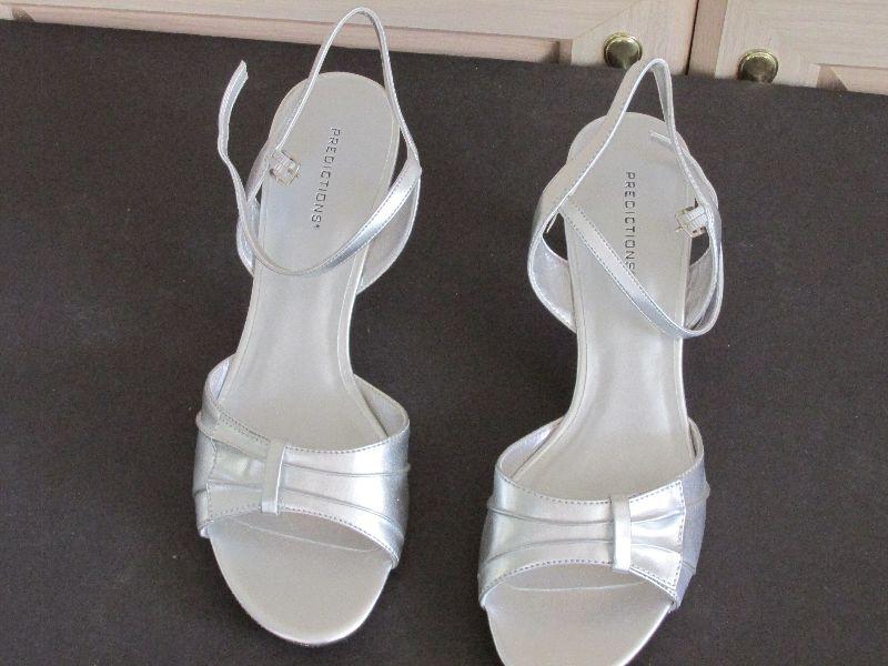 Silver open toed heels by Predictions. In very good condition. Size 9 1/2.